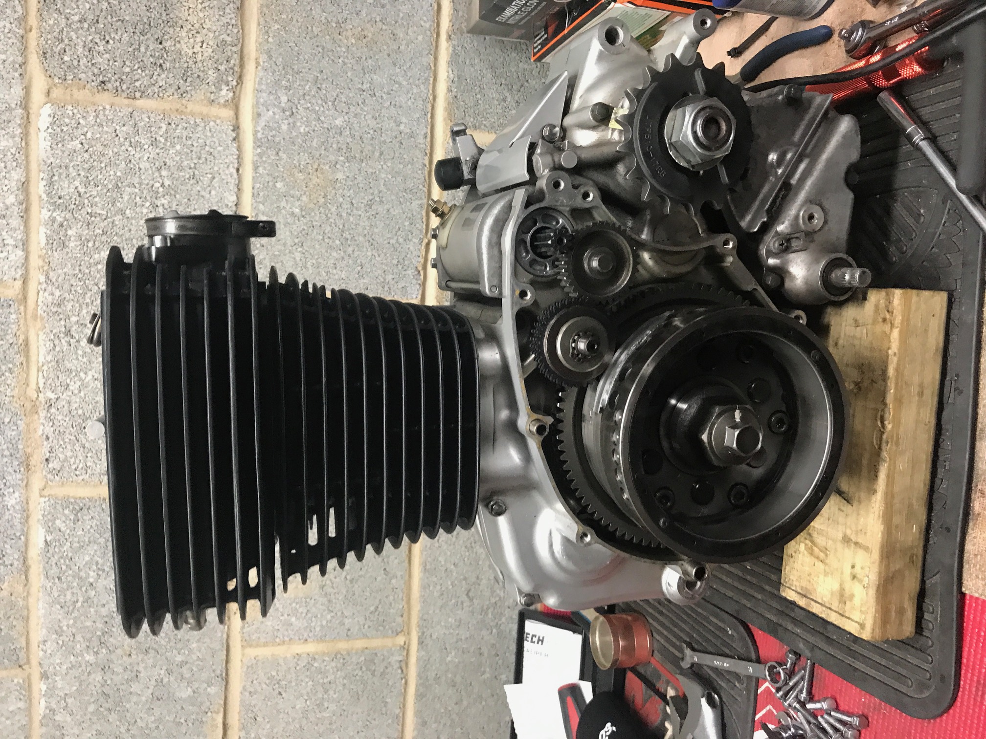 Started painting the cylinder/head, polishing the side covers while rebuilding the motor in the meantime. The motor ended up needing a new cam/rocker arm. Everything else checked out, i had also previously installed a new clutch before hand.