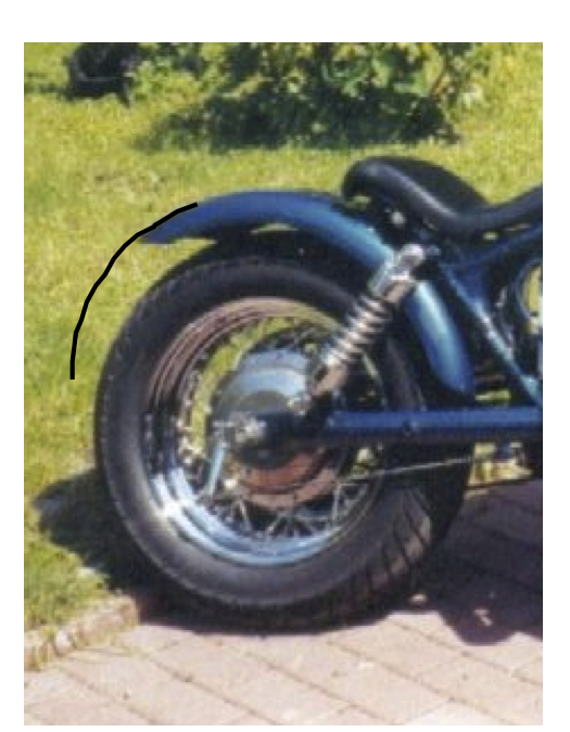 The look I'm thinking is like the rear fender on a bagger but without the bags on side. And a little shorter, not as low in the rear. Would like to mount tail light and license plate holder on the back of it. Sort of like the line added in picture.