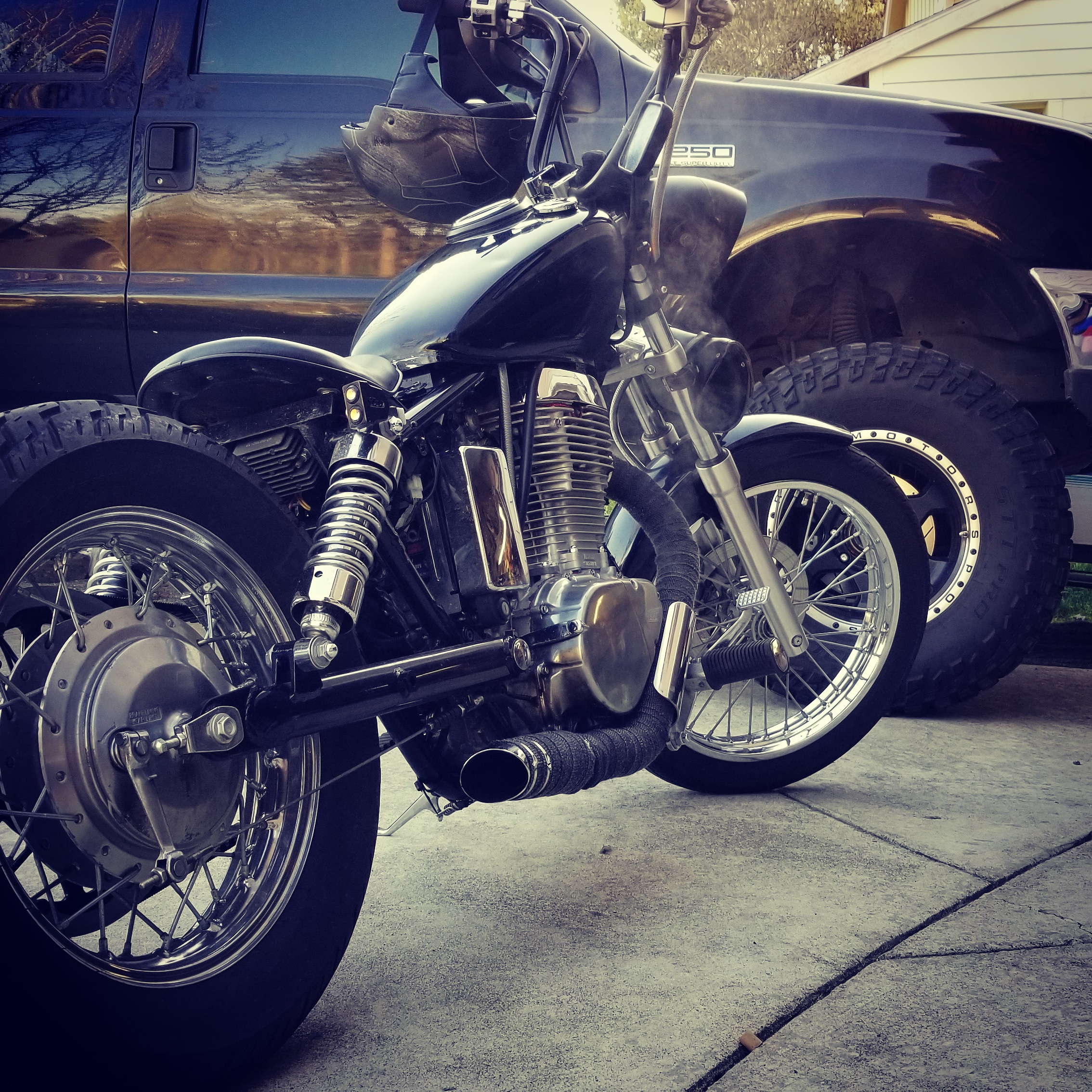 I haven't tried doing the strut swap over which is a good idea, it's more so my cruise around town and to work bike. Less than 20 miles one way for work.  When I do the conversion I'm going to have a custom leaf spring for the seat made. I do have a small bag under my headlight was just jostling ideas to keep from wearing a back pack every time I go some where. I usually carry a lunch and a few other may need items but would like to toss on a cool bag or custom set up that I can throw that stuff in.