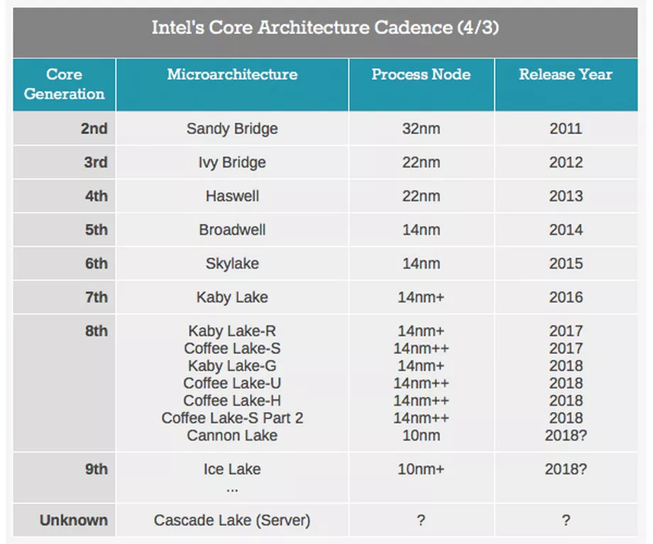 Meanwhile, Intel’s difficulties getting to 10nm have prompted the company to change its product roadmap several times in recent years… and to pretty much give up on its long-held “tick tock” cadence, which saw a die shrink one year, followed by a microarchitecture update the next.