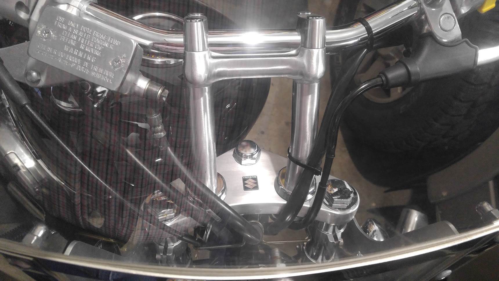 Yea, there's a wire guide that's held in with two bolts... but would that be mighty low? I am unsure if the risers on mine are stock or not, but they're pretty high compared to the wire guide.