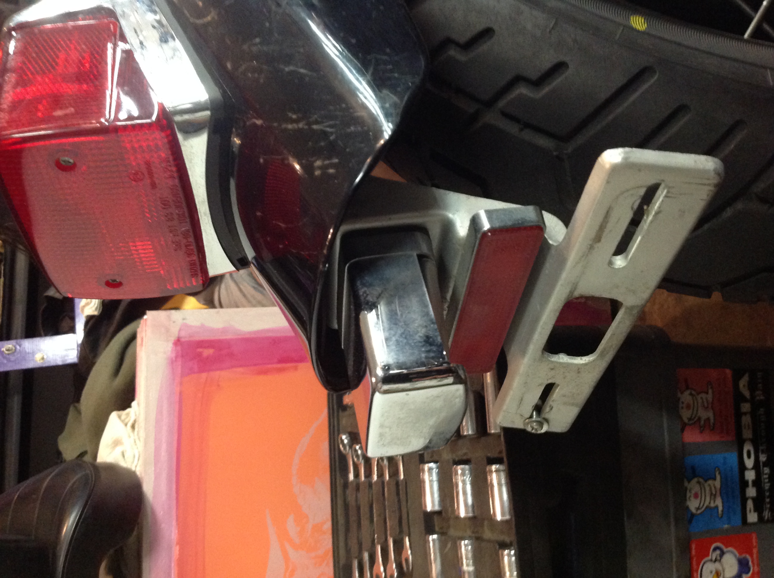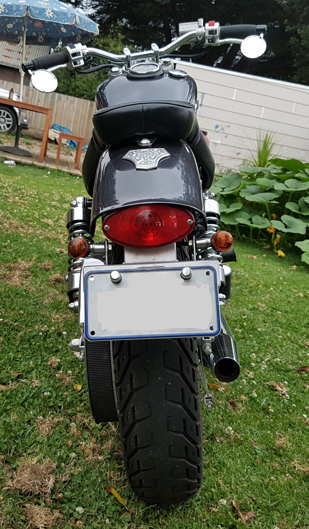 Hope this is the correct section to post. I made a small bracket to hold this cheap led tail light I got online. Welded the bracket in place below the rear fender, looks a lot better than all the bulky stock set up. works, doesn't get in the way of anything. Here is the before. And I will upload the after.