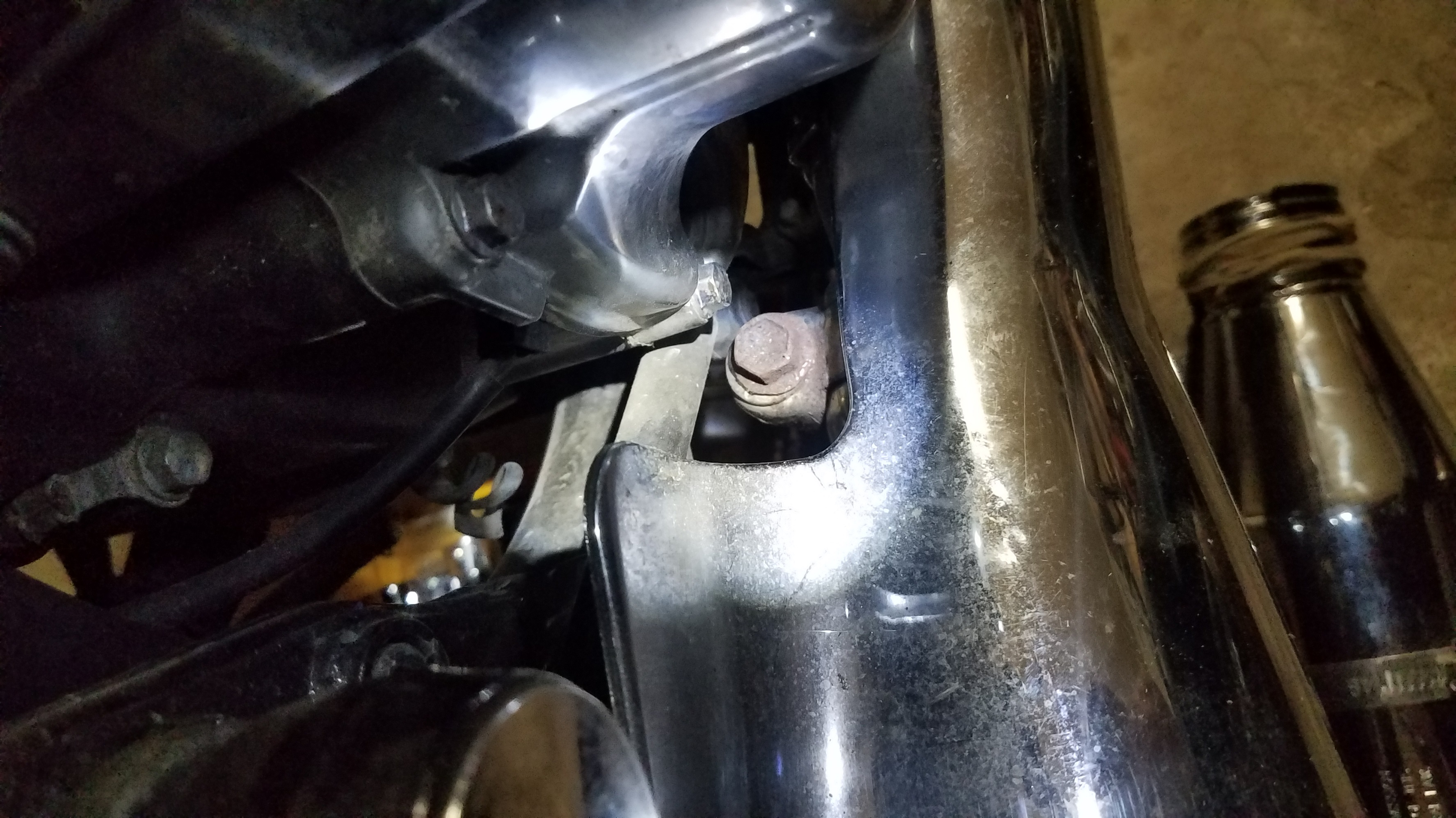 Oh! And one of the heat sheild bolts is a through bolt that needs held on both sides of the bike. DO NOT reach around the front of the bike, to hold both bolts, if the header is hot - don't ask how I know.