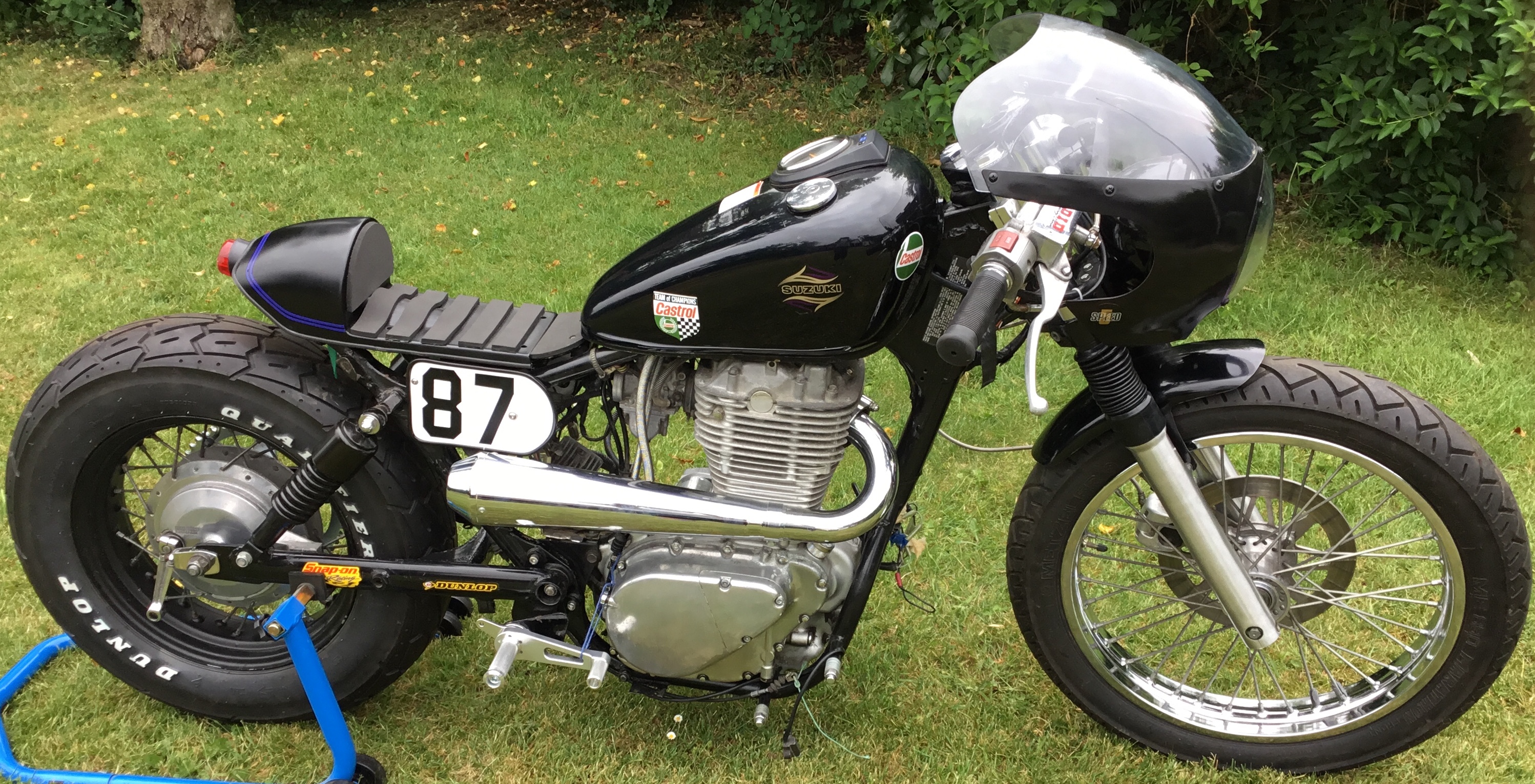 This is my 87`with a 96`engine. Just modified my swingarm and put on a 4,5” rearwheel. The tire is Dunlop 150/90. Hope you like it.