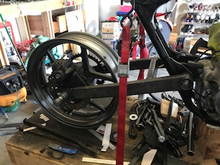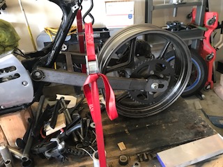 Just popped my new swing arm out of the jig. It’s just tacked together and the front bracing isn’t on it yet but everything fits and measures straight.