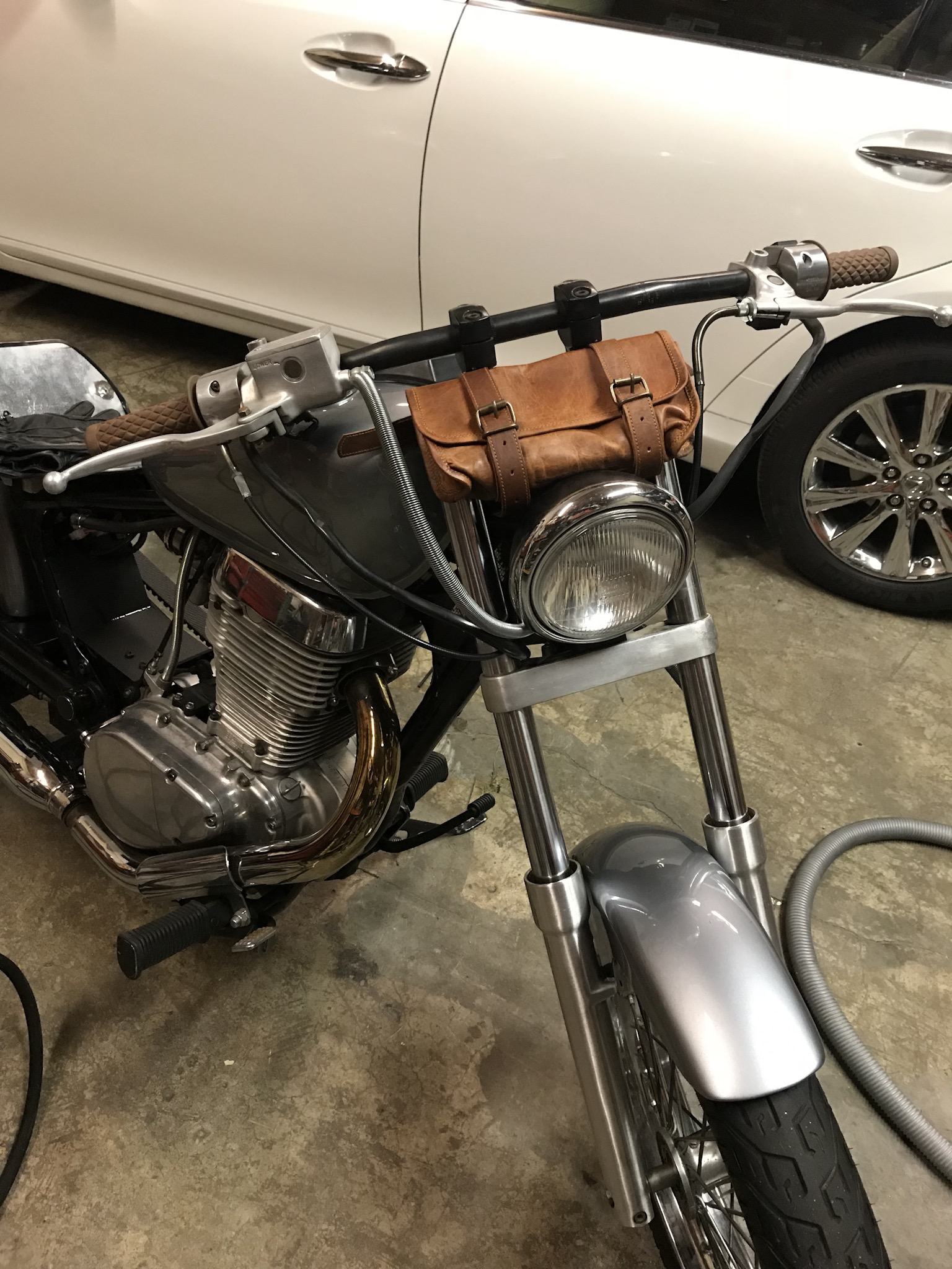 Flipped the risers, that fixed my clearance issue. Also the delivery guy dropped off my leather bag today! Got it installed. Registered the bike and got the plate on. I’m considering a center mounted license plate bracket, I feel like that will make the rear end a bit more symmetrical.
