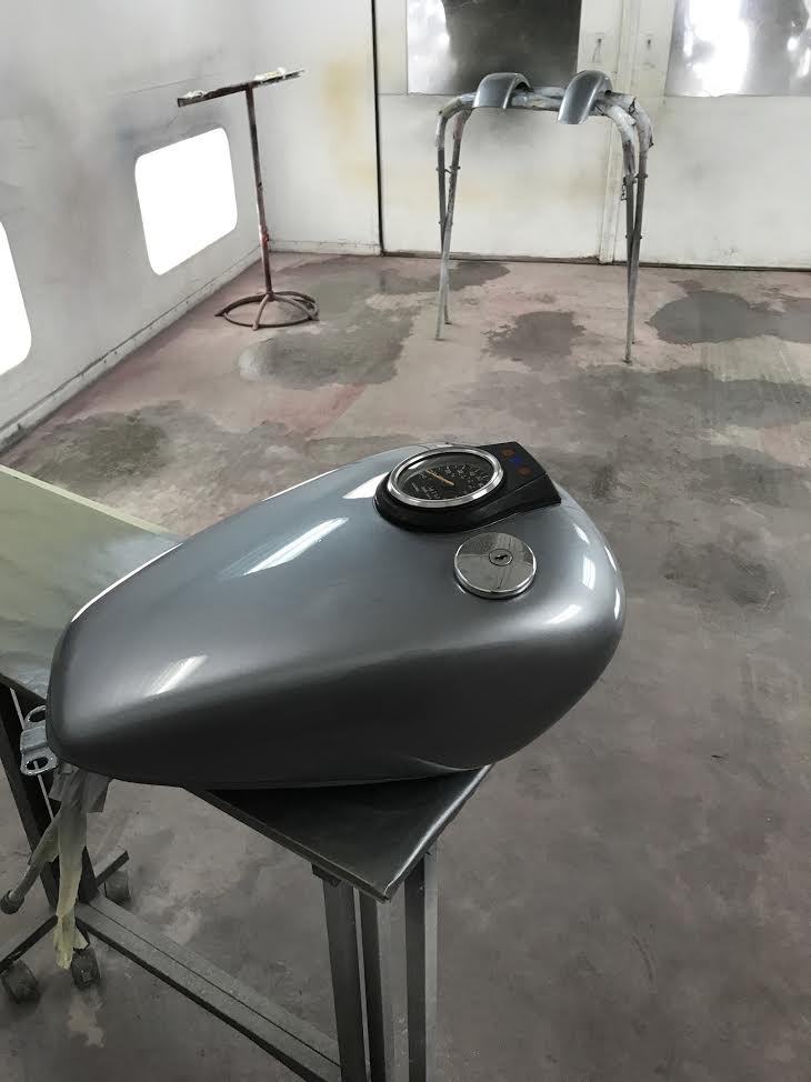 The color I chose for the tank and fenders is a BMW silver gray metallic. I forget the color code but if anyone needs it I can probably find it. I think it came out great. Especially in the sun i like how it changes from silver to gray.