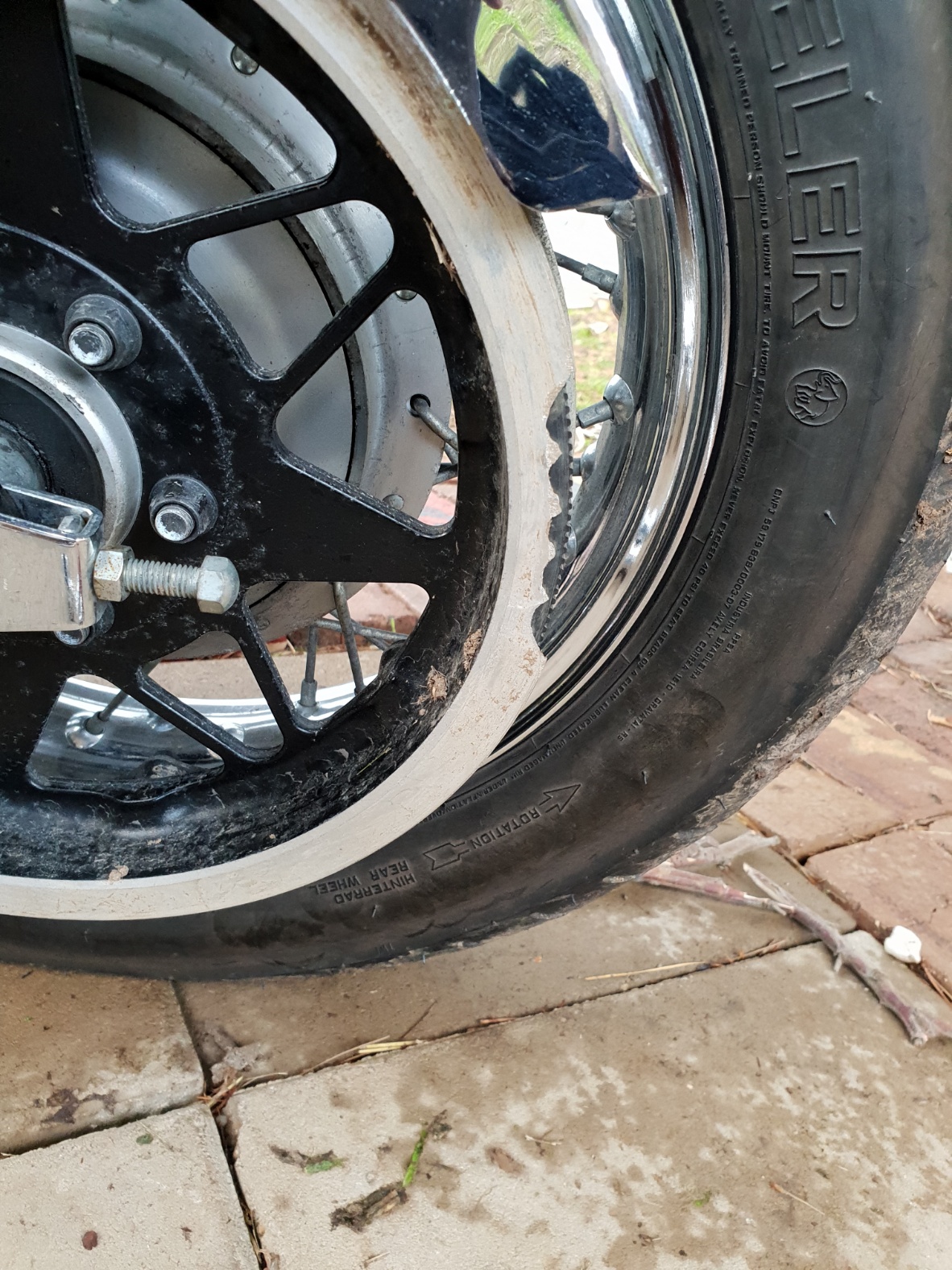 › Tyre pushed in, off the rim?