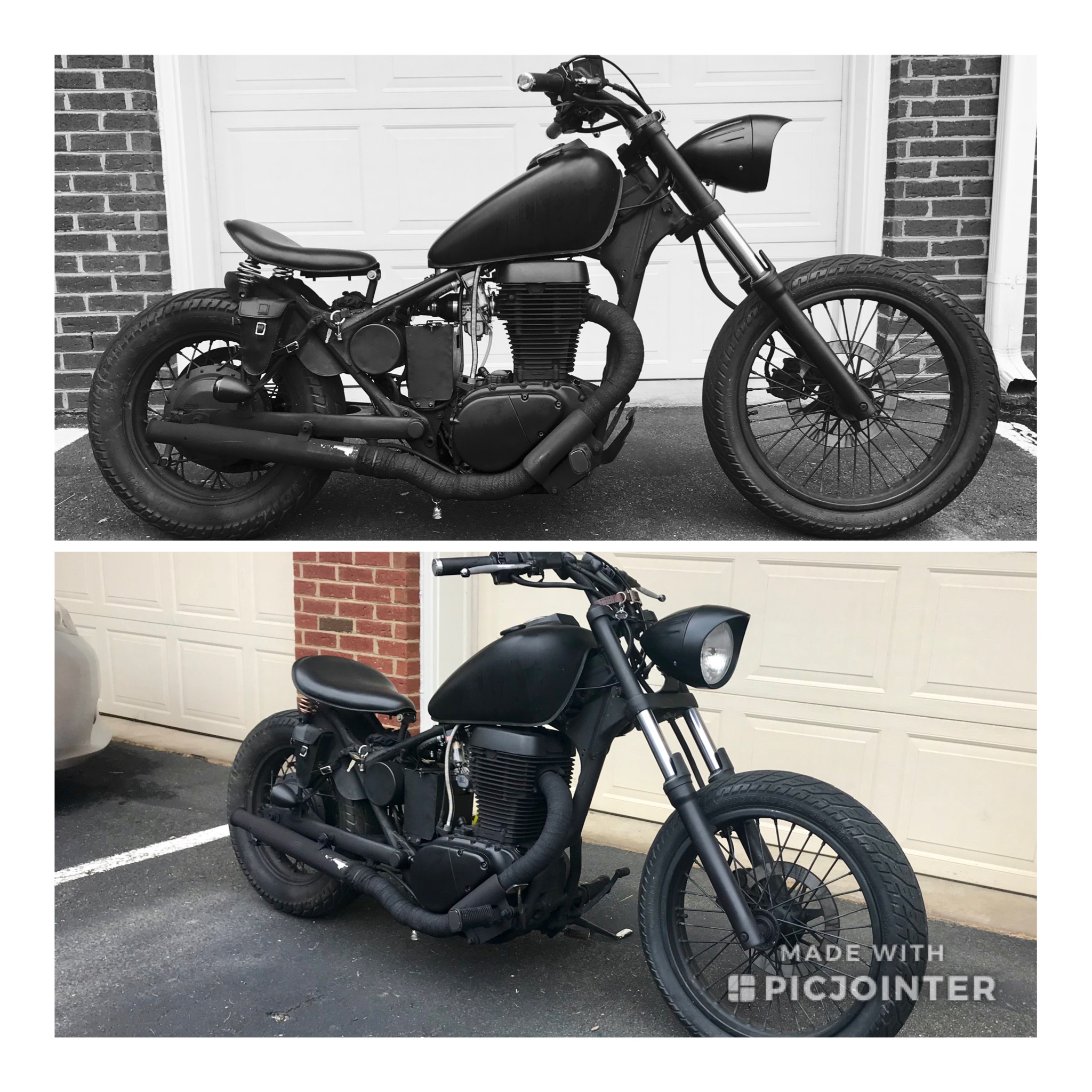 1999 Savage, basically stock, except drag bars, 4"risers,Jardine turn out muffler, Raptor petcock, Verslagen modified cam chain adjuster,4" forward controls