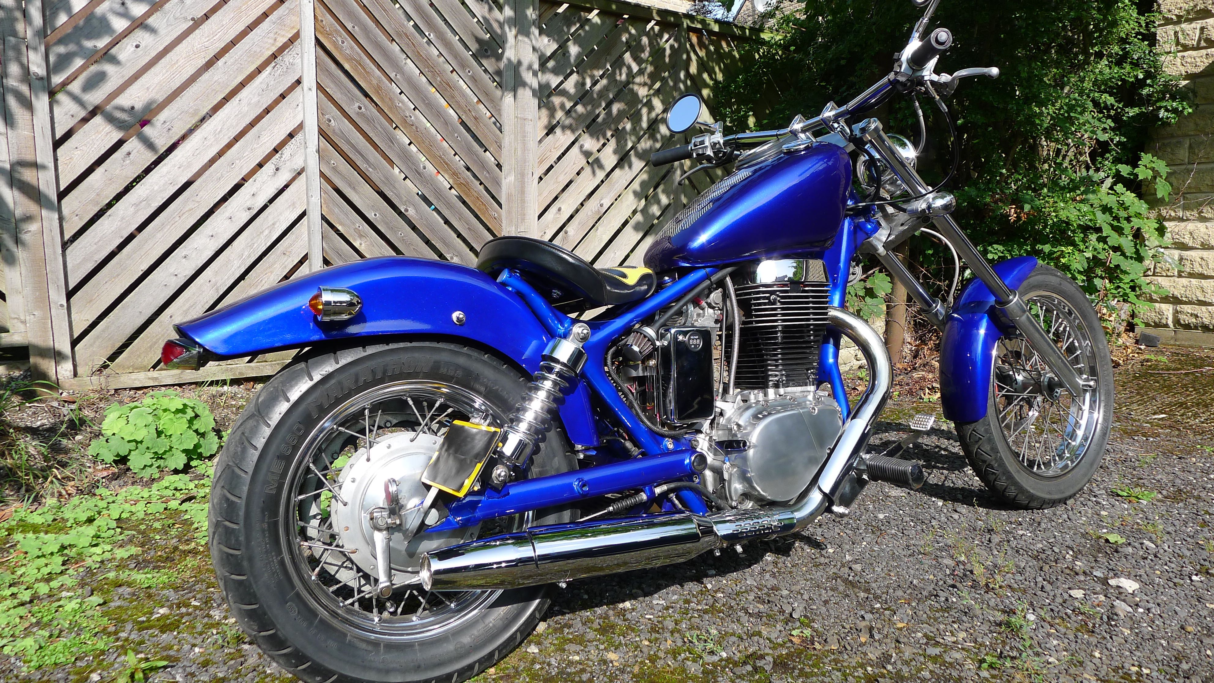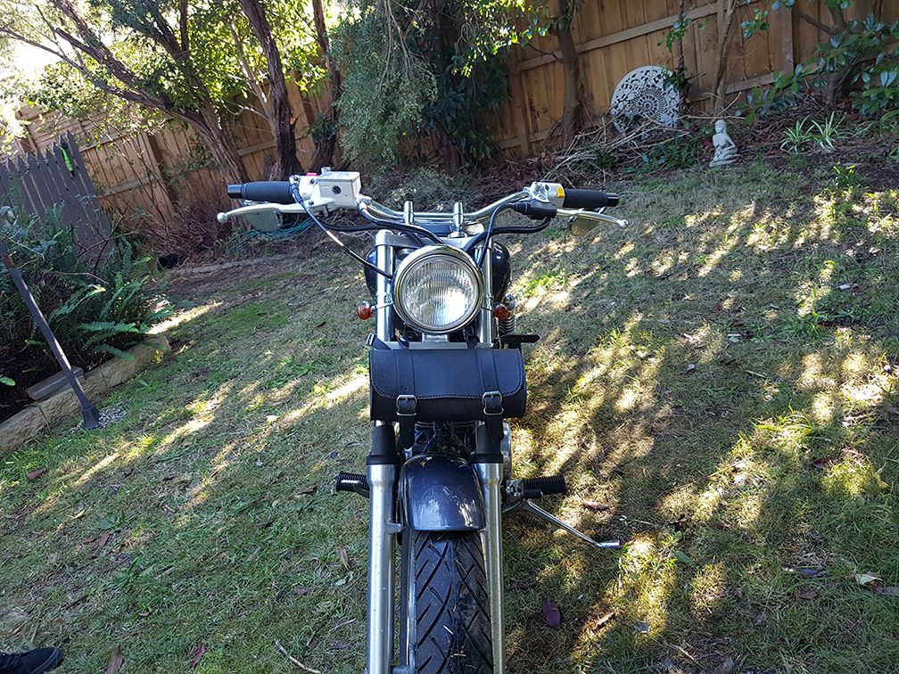 I sold my LS650 chopper c/w extended forks and kept my Blue Collar Bobbers' kitted bobber with standard bars/risers.