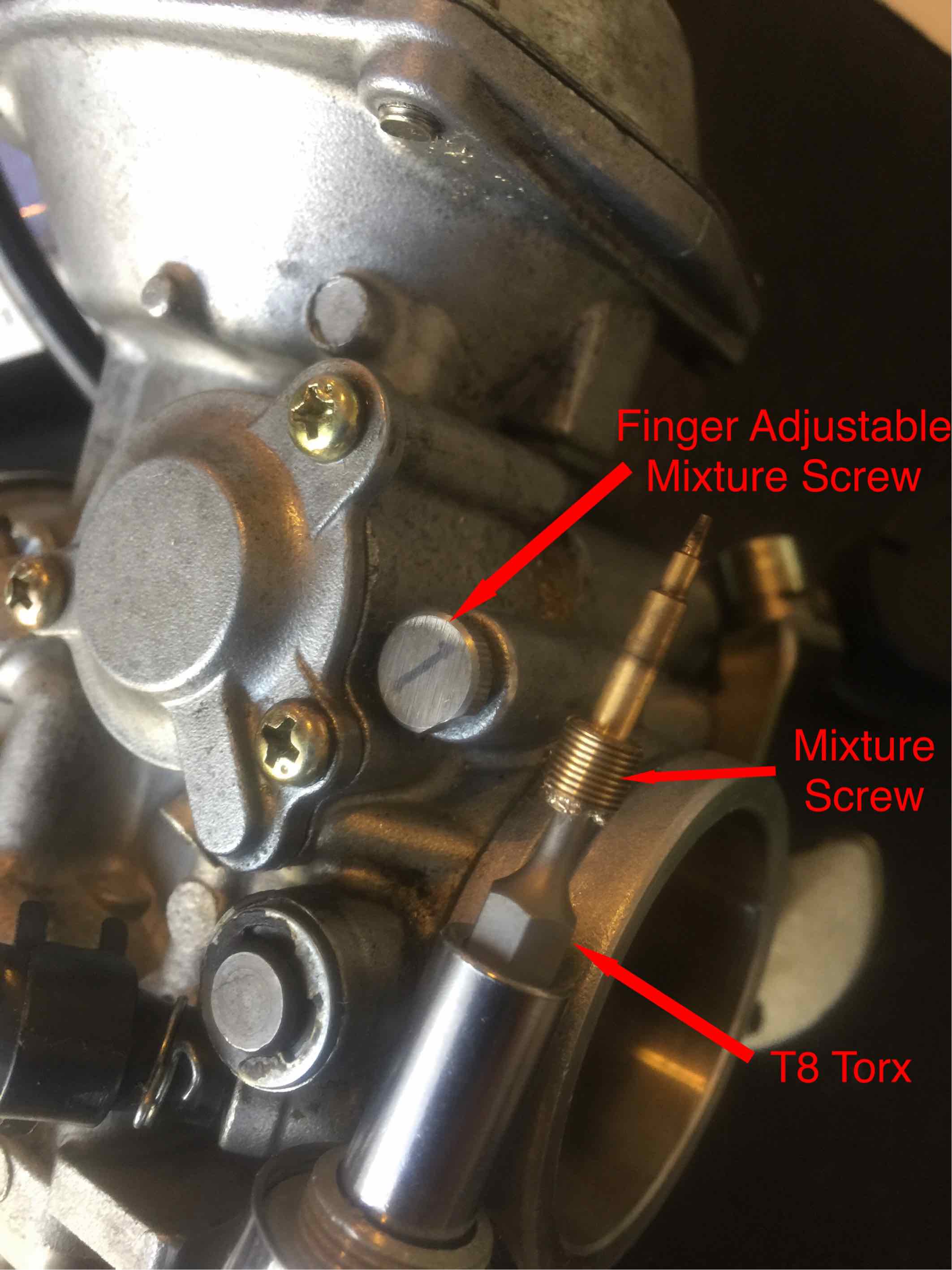 Thanks, Dave! I was waiting for a definitive answer before continuing so I didn’t mess it up more. I saw your response and started drilling it out this afternoon. The drilling went fine, but I was unable to remove the screw with the extractor. It just wouldn’t catch. So I fell back on plan B which I found on a post in the tech section. I lightly hammered in a t8 torx bit, and then just used the bit to extract the screw. Worked like a charm. No need to re-tap. Below is a pic of the old extracted screw, as well as the newly installed finger adjustable mixture screw. Now on to the carb tuning with the new jets. Thanks again for the words of wisdom!