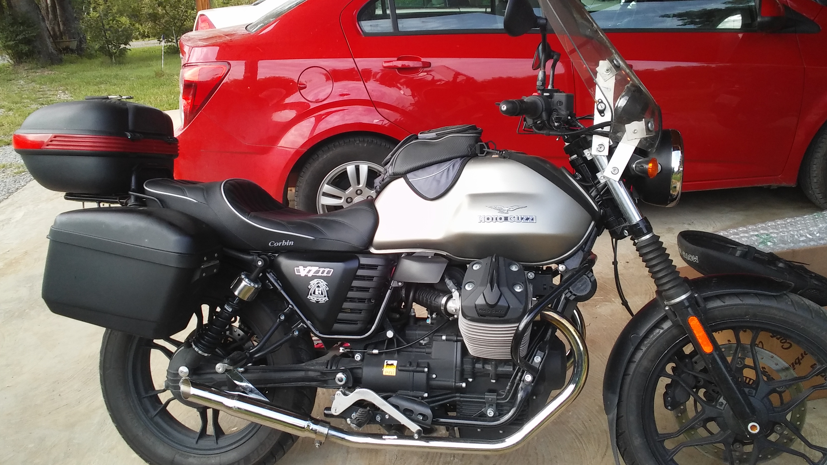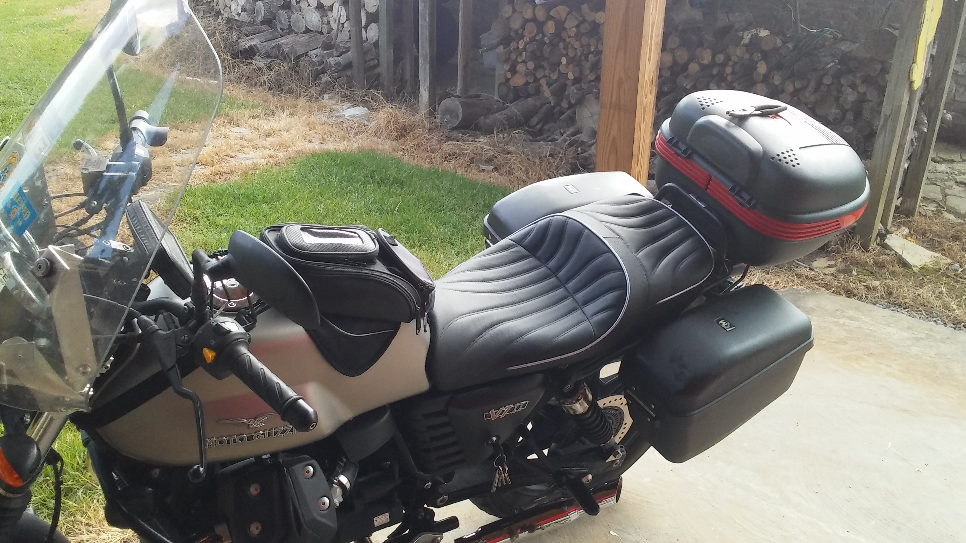 I put a Corbin on the Guzzi and can hardly believe how much better the ride got .   Its almost 4" wider where it counts but about an inch less in the front where it needs to be for redlights and such.