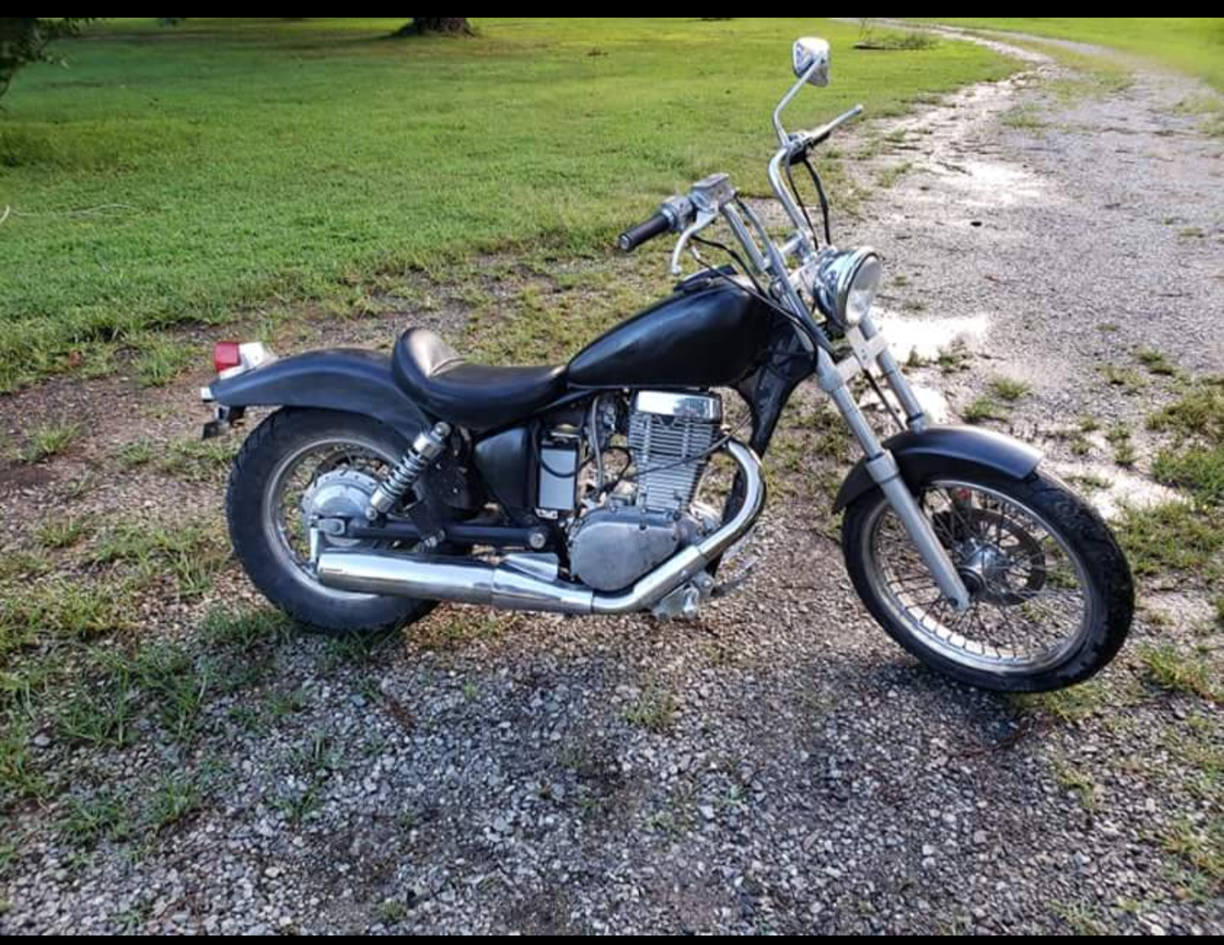 It runs and revs good. Previous owner lowed the idle speed to get that thump-thump sound so that will be one of the first things I fix. Front brake is non-functional, I think because the bike was laid down and the lever is really bent. The bondo job on the rear fender combined with the rattle can paint job is really bad but that can fixed over the winter. I definitely need new clutch and throttle cables. I like the bars so I need to figure out how to get a decent measurement and find a place that can make me some custom length ones.