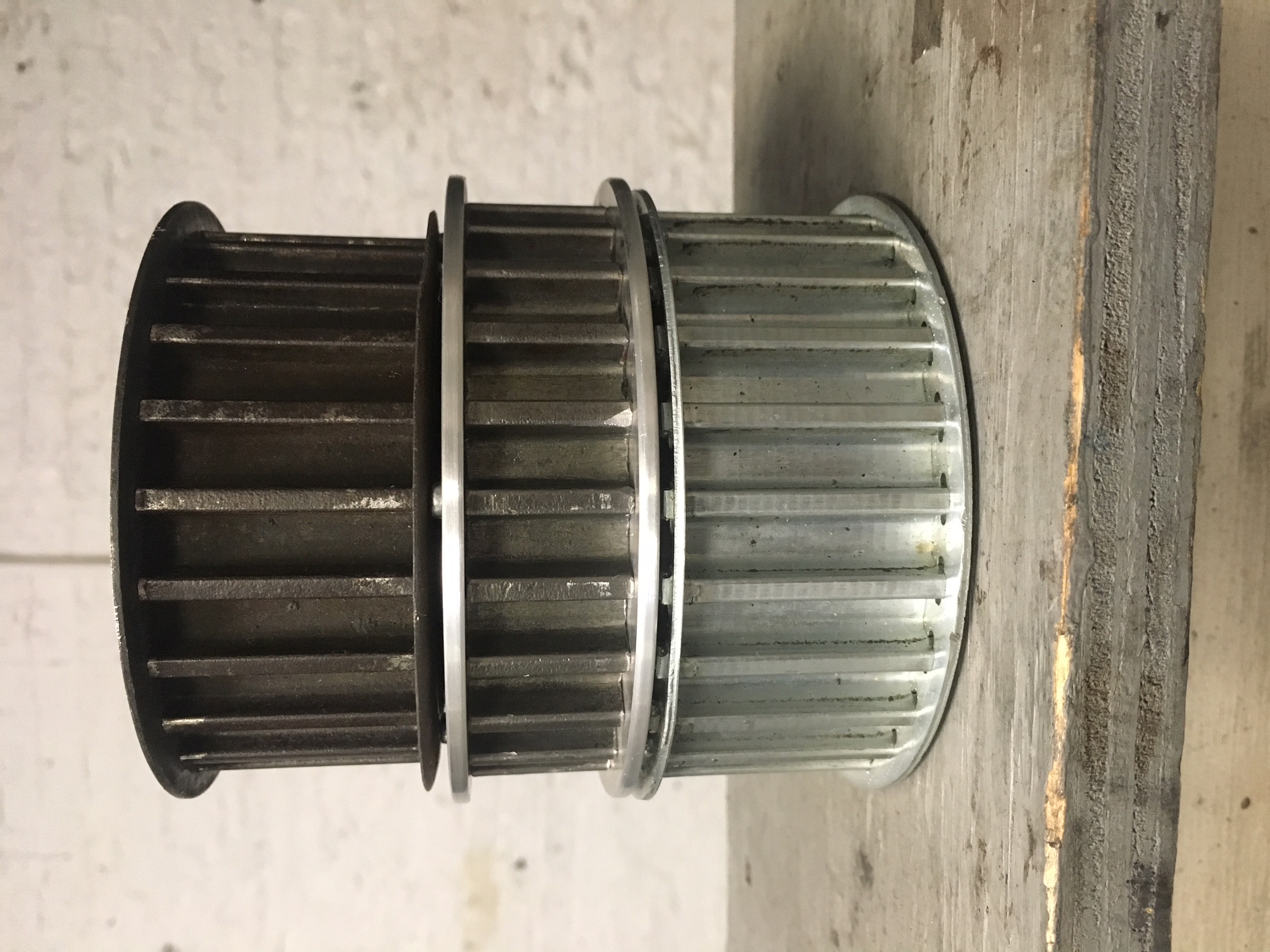 So, I had cut down one set of pulleys and a belt to 1" wide because I thought the 1-1/2' stock setup looked ridiculous. Seeing that Big Twin Harleys run a 1" belt, I figured it had more to do do with looks than reality. Of course, maybe their belts are much better.