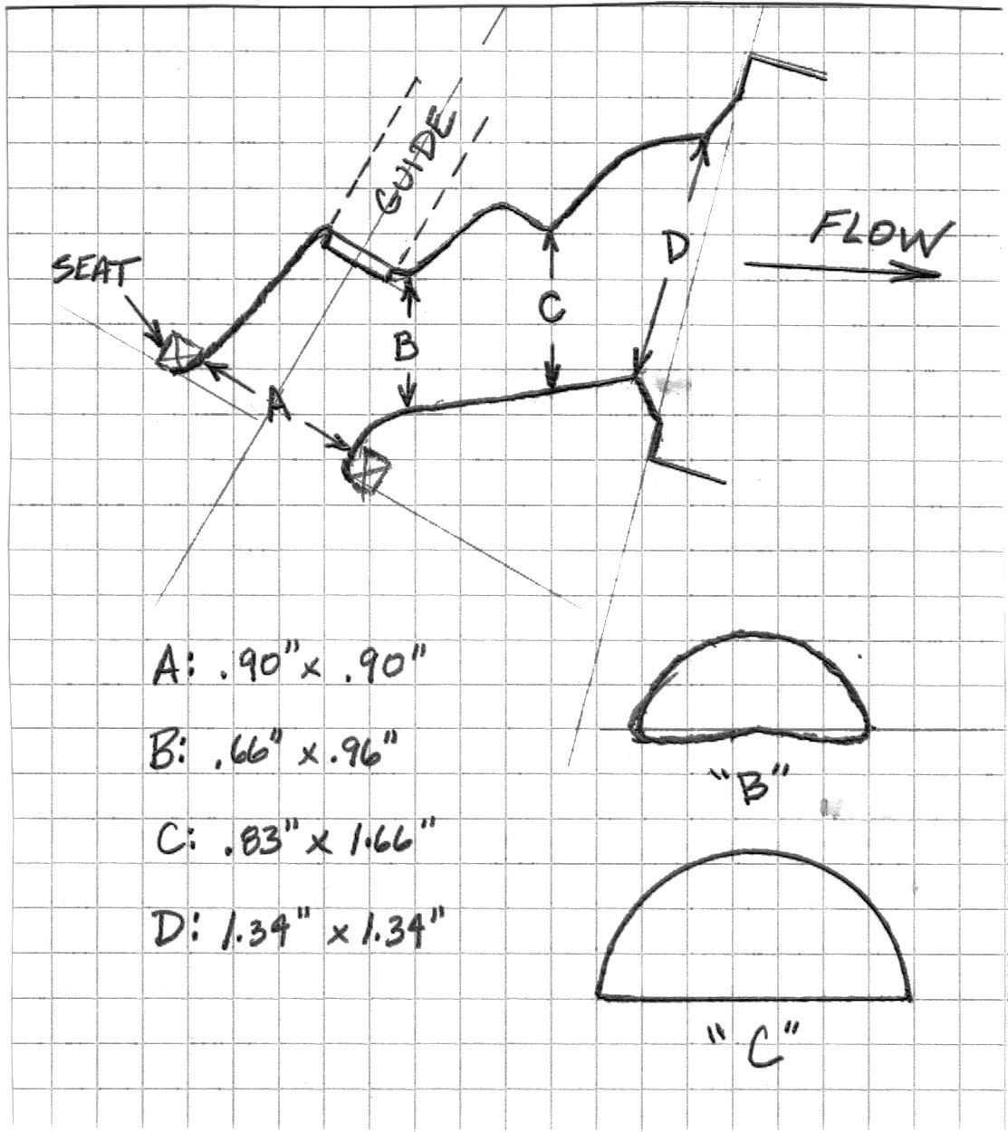 Regarding your comment about removing material from 3&9 o-clock positions, all I can say is that I've been reading a lot over the last few months. Pretty much everything I see from the so called experts says you want to increase the radius on the long side to improve the angle of attack, and only smooth the short side radius. The experts seem to agree that you don't want to remove a lot of material from the short radius because the port volume increases too much and the gas velocity is adversely affected. What makes this particular discussion interesting is that all the literature I am referring to deals with the roof and floor of the port, not the sides. But I also must add that the experts rarely discuss the exhaust port, they generally talk to the intake. The huge differential pressure across the exhaust sort of makes it a non-problem, at least up to a point.