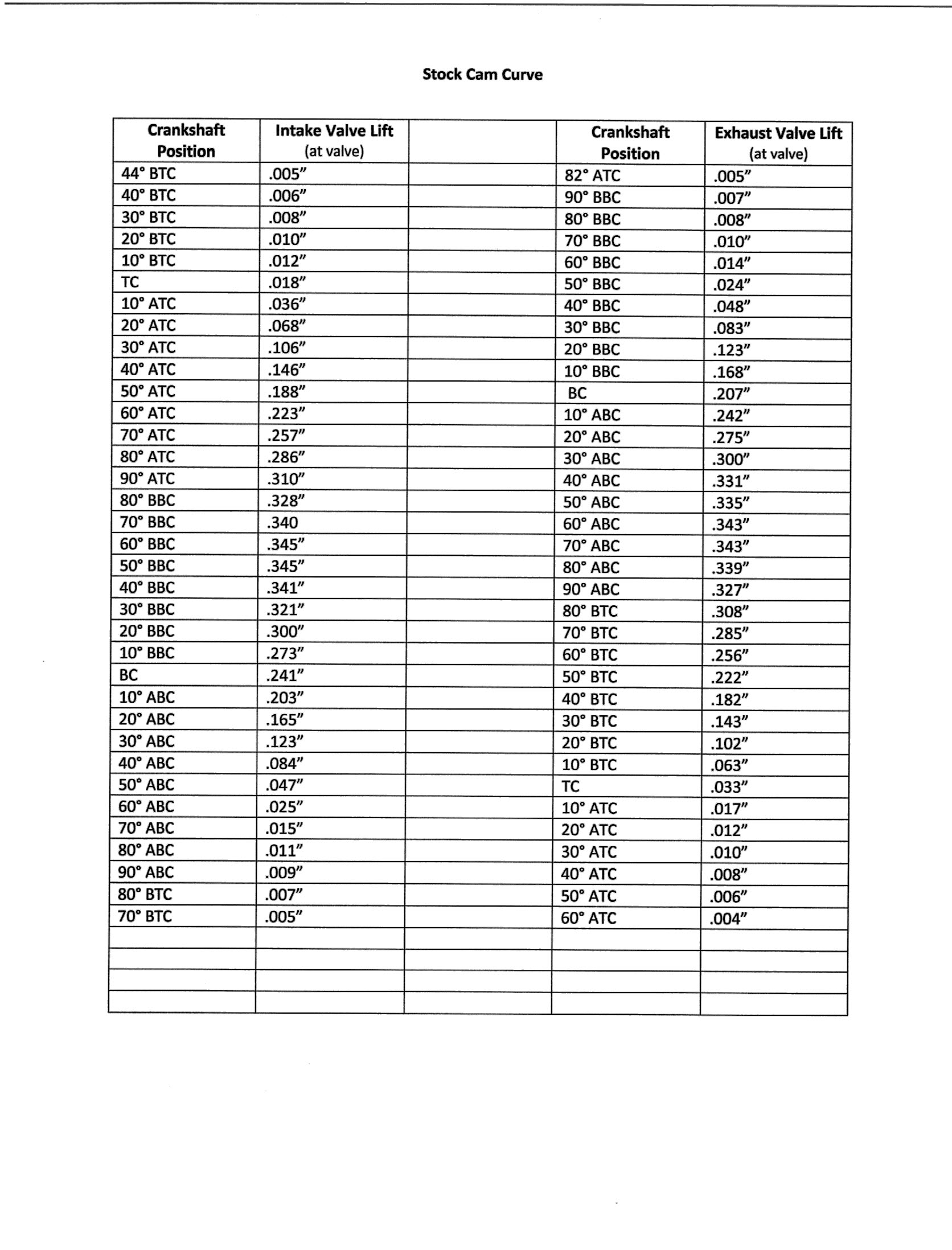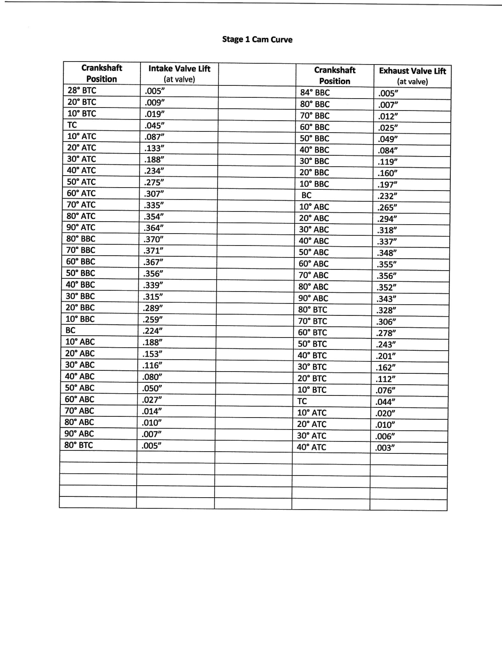 The stage 3 is the most aggressive but looks like it will offer good drivability. It really doesn’t have any more duration than the DR or Stage 1, has minimal overlap, and relatively low TDC lift. However, I personally do not consider the Stage 3 a bolt-in cam because of its maximum lift (.393” intake). With only .430” available travel between the valve spring retainer and the guide seal, the .393” intake lift leaves only .037” clearance between the retainer and seal when the valve is fully open. You generally want a margin of .060”, so as a minimum, the head should be checked to make sure you won’t have an interference problem with the Stage 3 cam. I know that some members are running that cam with no problems, but there are manufacturing tolerances to consider. The consequences of a collision between the retainer and guide are grim at best. If you don’t plan on doing a proper setup, use the Stage 3 at your own peril. I respectfully invite comments and discussion on this post. Testimonials to the cam you are running now, or have run in the past, would be great. Comments on any problems you have experienced with any of these cams, or others not contained herein, will help all of us to avoid serious issues on our projects. Please share information about setup, springs, retainers, clearance, interference, etc. It goes without saying that we are all anxious to hear about performance. How does your cam perform? Did you have to increase your compression ratio to compensate for late intake closing event? Fuel octane? Failures? Loss of low-end performance? Freeway performance? Hard starting? Detonation? It’s all good.
