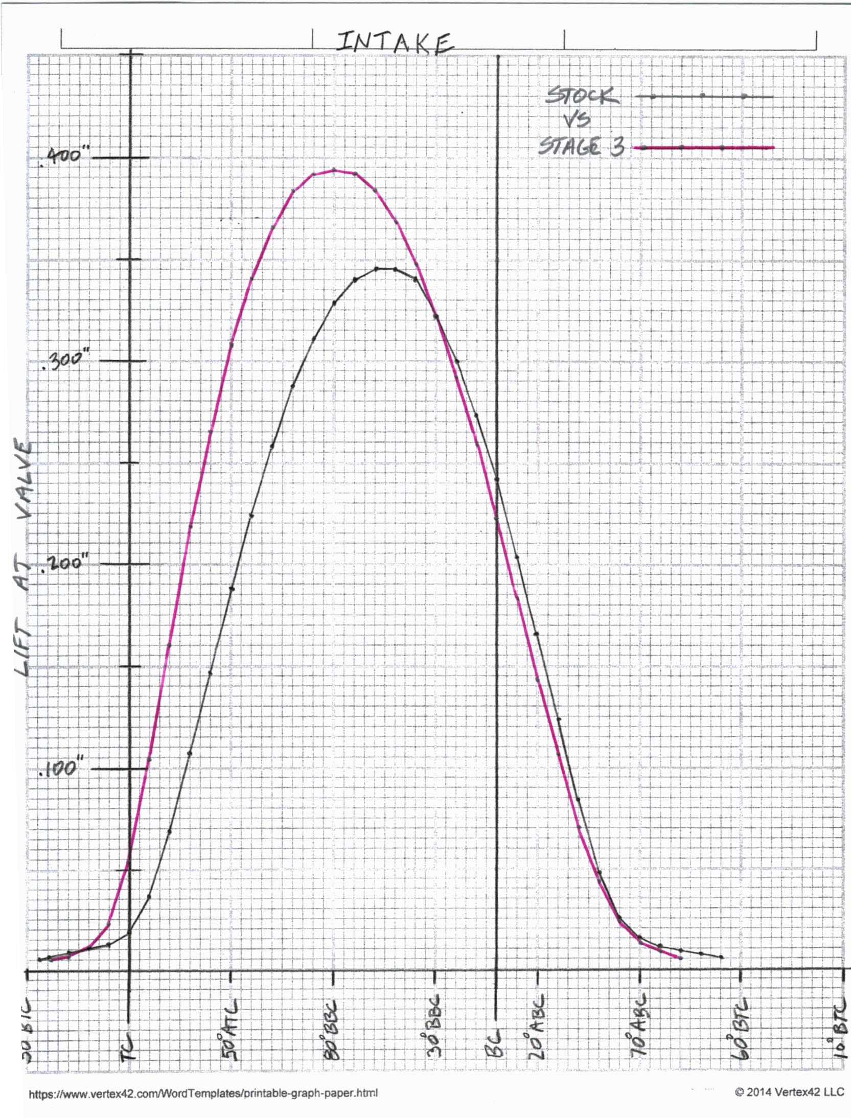 Here is the graph of the stage 3 exhaust vs stock exhaust.