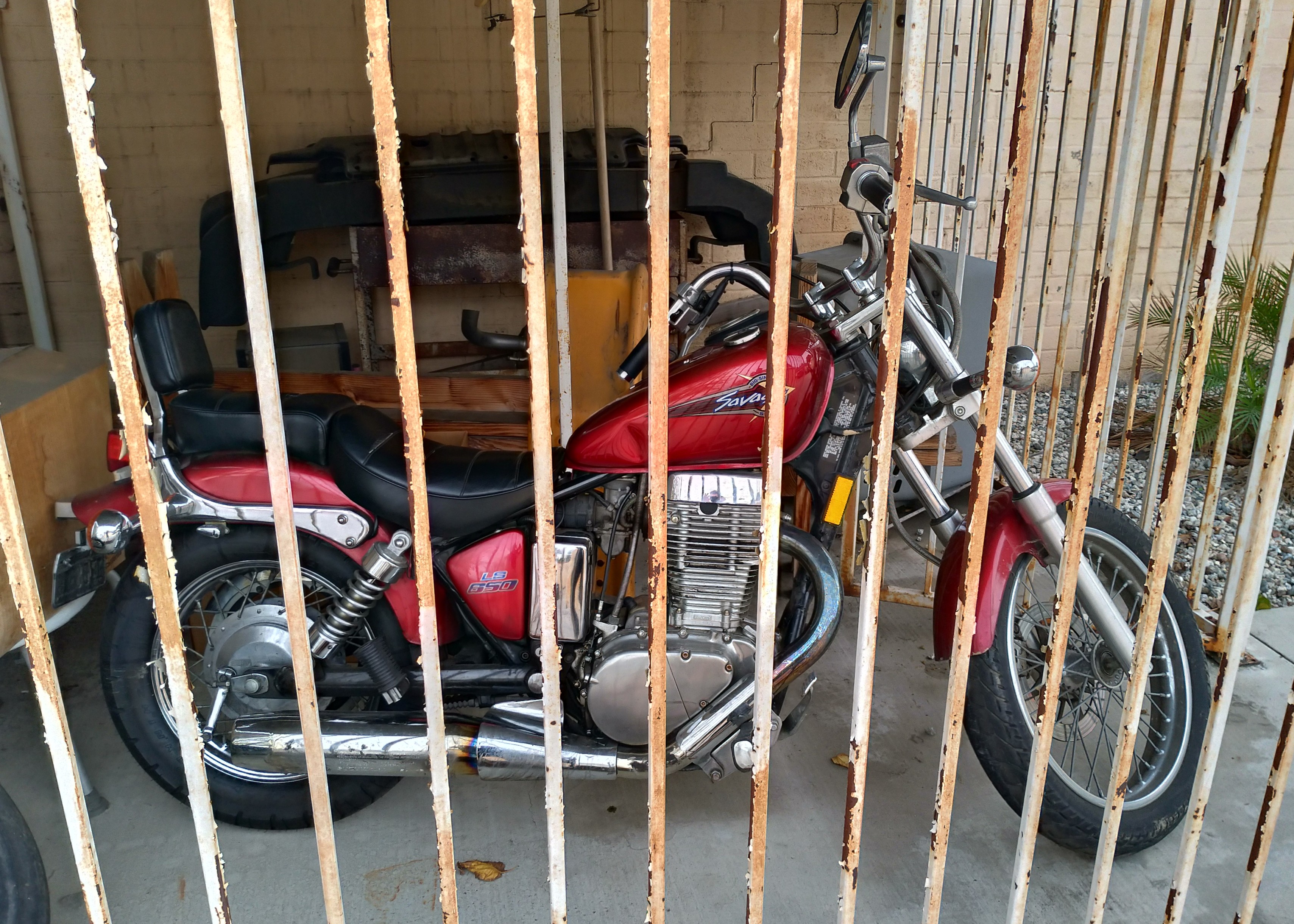I have some tube and end caps on order, which will be used to build a dummy oil tank. The battery is stock size and brand new, so instead of buying a smaller one to fit on the muffler bracket, I intend to work with it to try and build a box that will tuck it down and out of the way as much as possible. We've had some rain that's kept me from trying to plan/mock something up from cardboard and PVC.