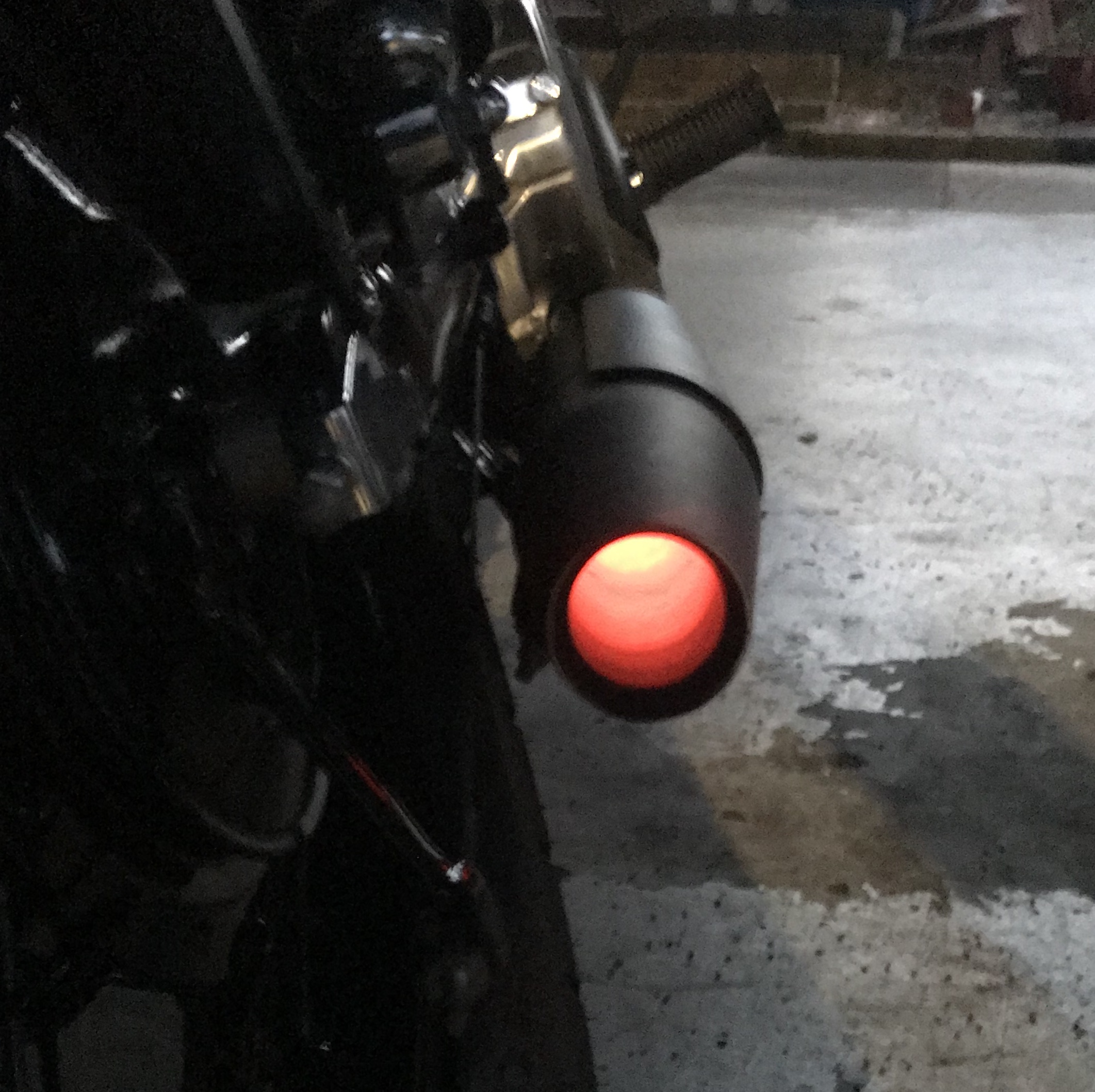 I drilled the bafel with a 1/2 inch bit and an extension. I went for a 15 minute ride. It still glows bright red inside. It’s a little louder now. In fact that is about as loud as I would want it. Doesn’t seem to have made much difference.
