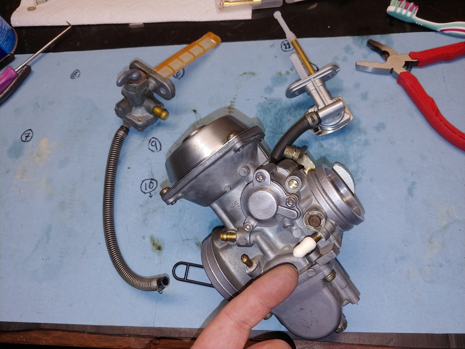 The way you set the float level in the second pic is correct. I hope the petcock doesn't limit your top speed ,but you'll find that out later. the needle jet may have been the right length but the taper may be way off and be a problem at part throttle ,where you ride most of the time.