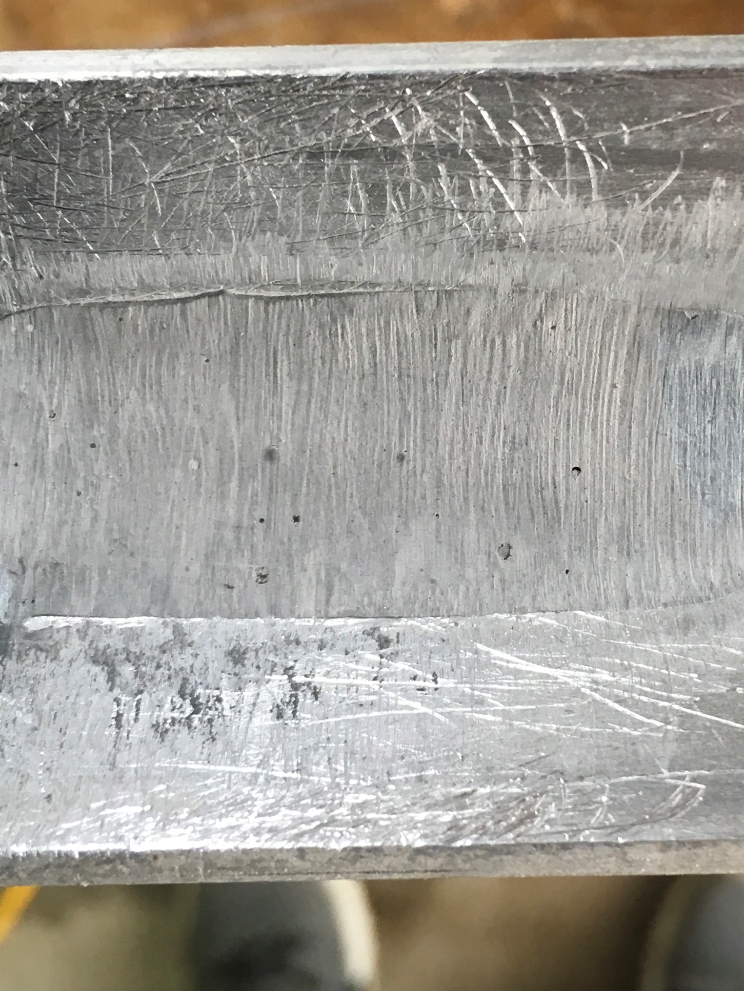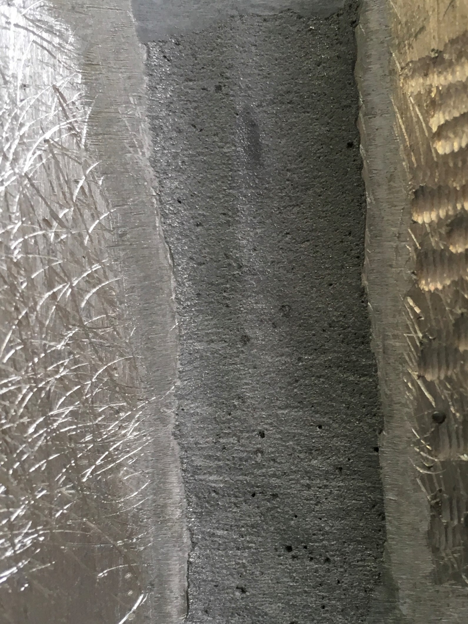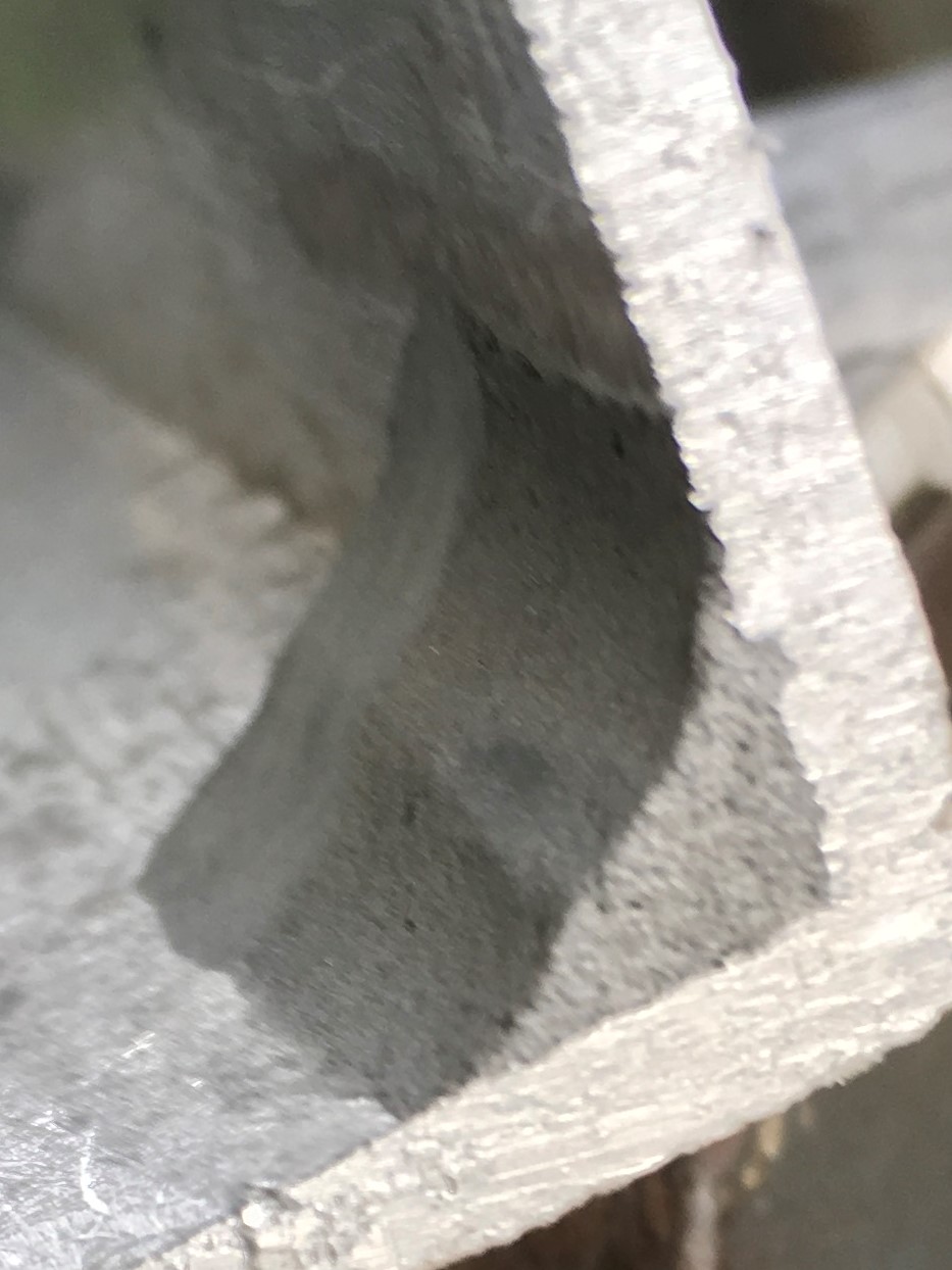 Here’s a look at the bond line on the original JB Weld.  It looks pretty good except for one small area where I could detect what appeared to be slight separation between the epoxy and substrate.