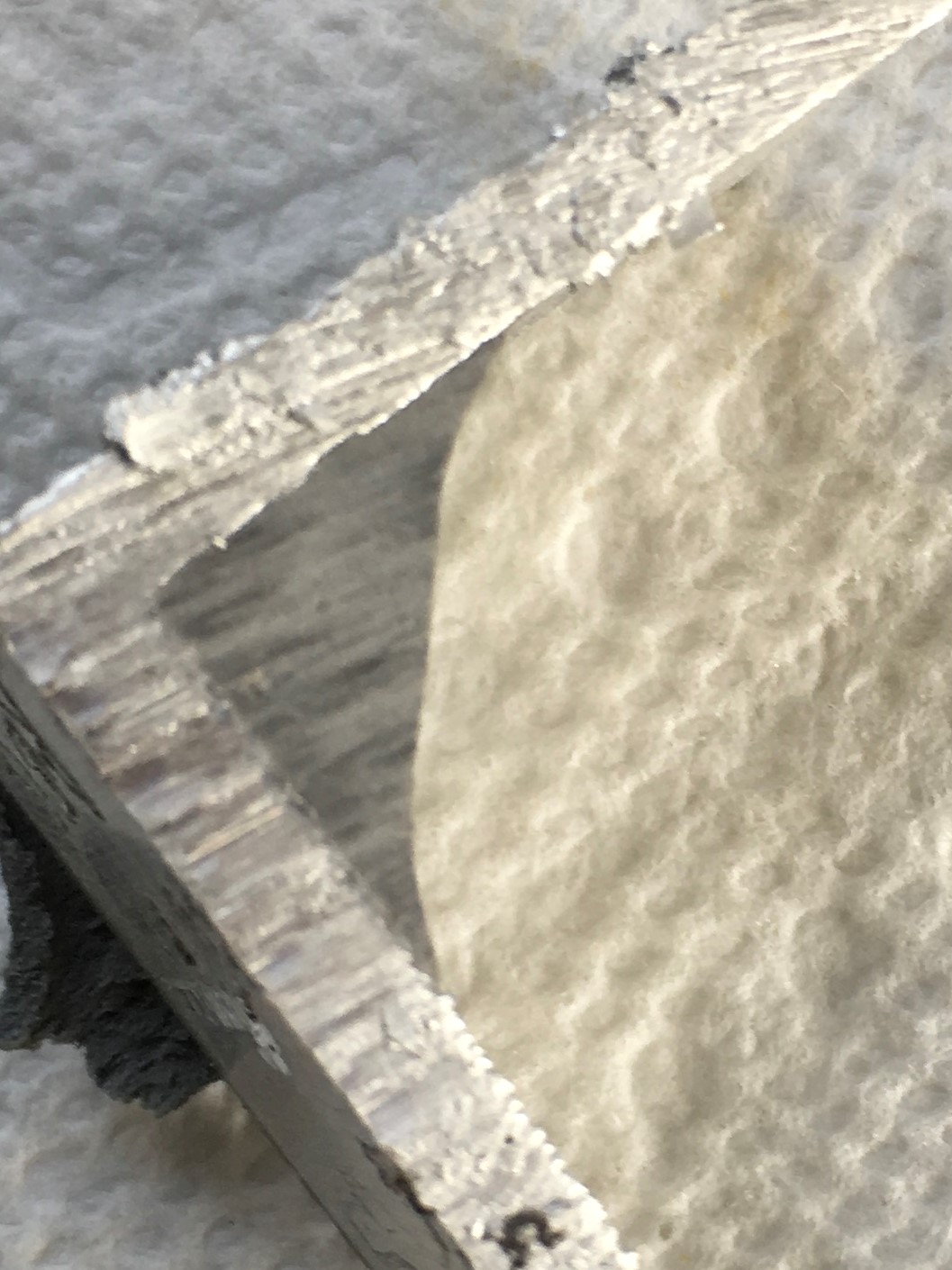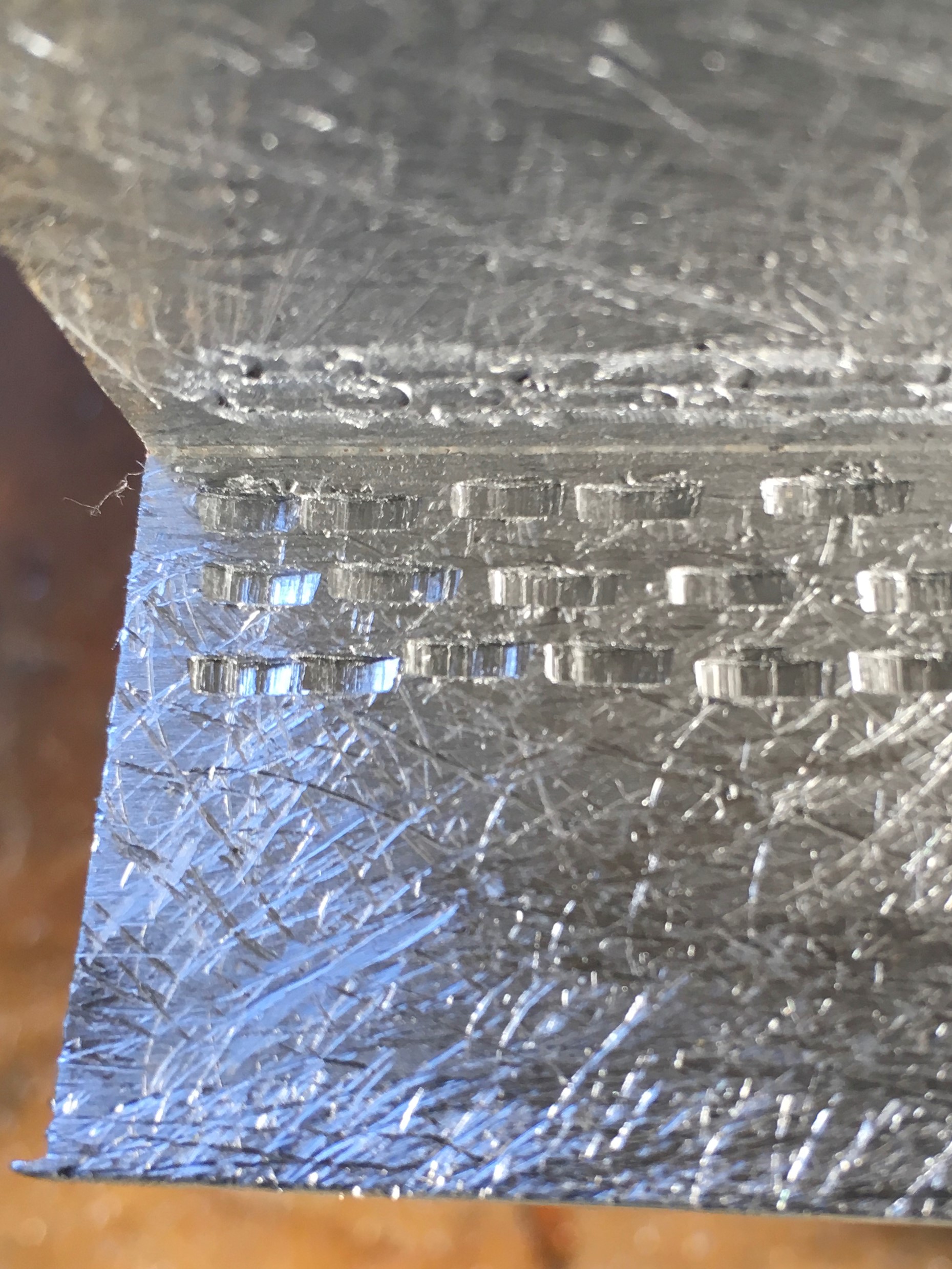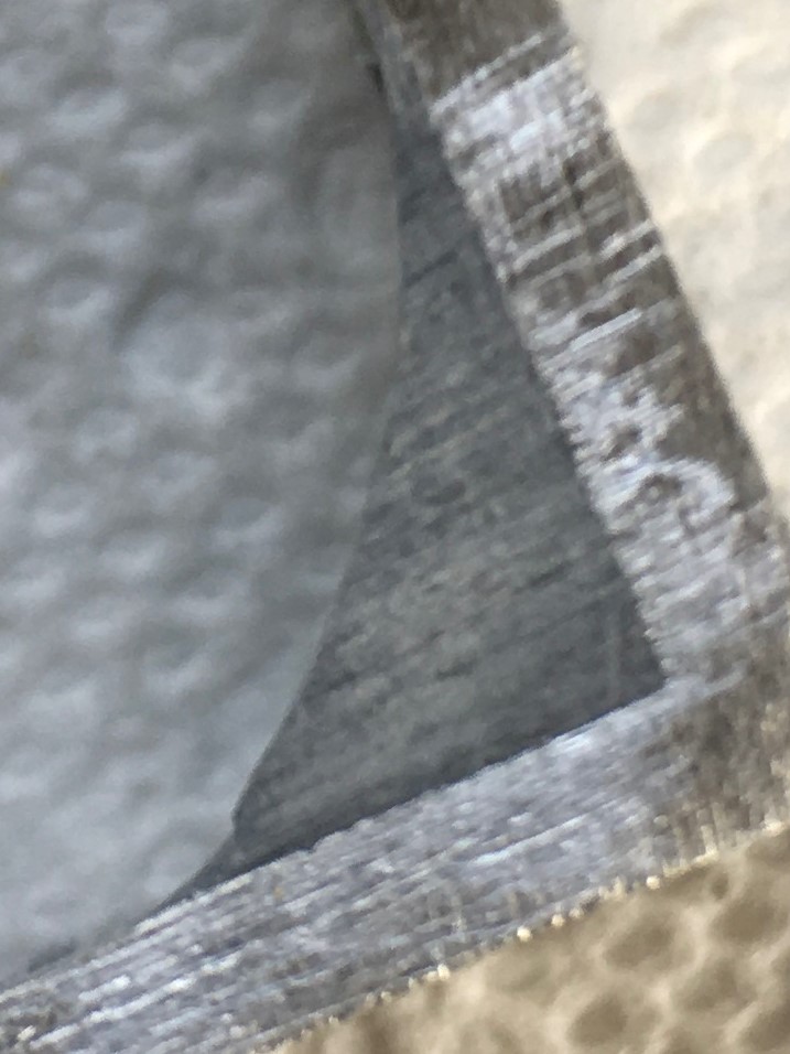 Here’s a look at the bond line on the original JB Weld.  It looks pretty good except for one small area where I could detect what appeared to be slight separation between the epoxy and substrate.