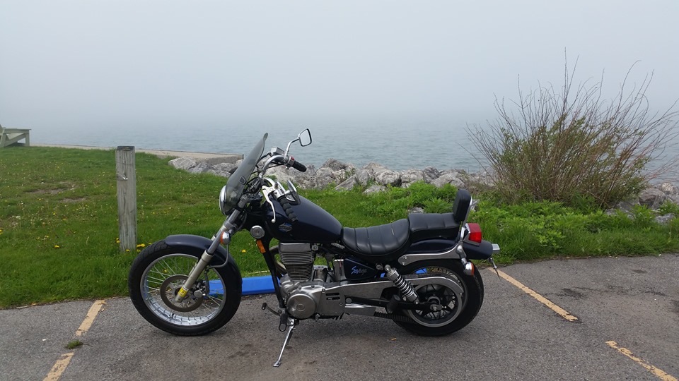 1999 Savage, basically stock, except drag bars, 4"risers,Jardine turn out muffler, Raptor petcock, Verslagen modified cam chain adjuster,4" forward controls