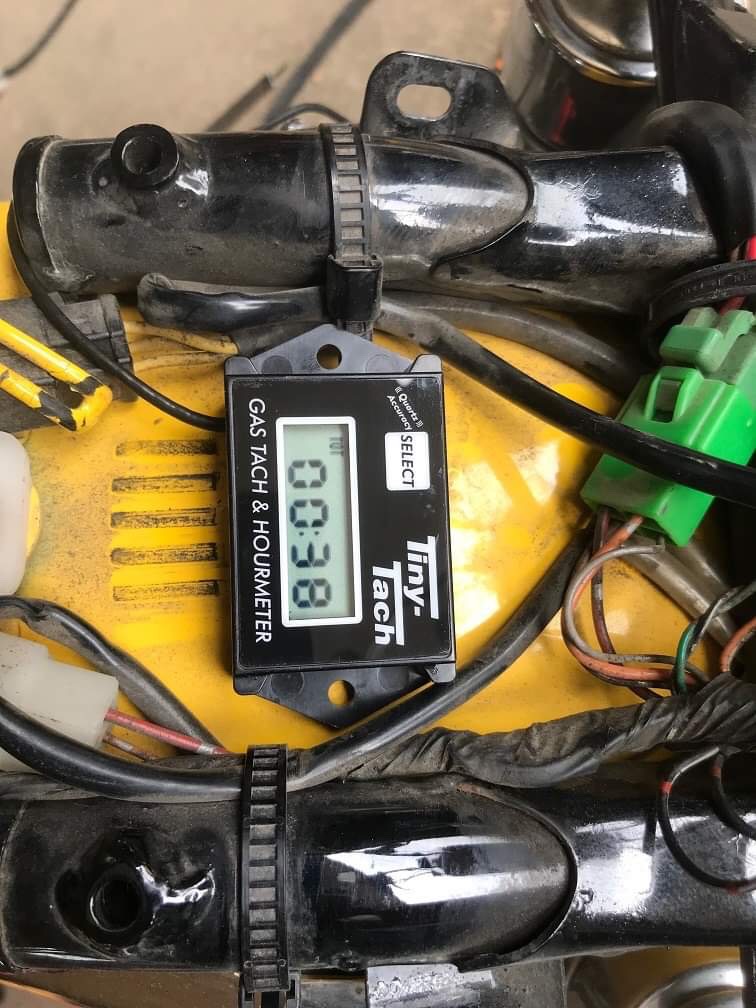 The Supertrapp isn’t important.  My wife rides it and she doesn’t like the noise. The petcock is working and I was tuning it with a warm engine.  Turning the idle down doesn’t matter.  I’m checking the speed with a tach and turning it down to lope at 800 doesn’t effect anything, the best adjustment is still with the mixture screw all the way in. I checked the bowl fuel level with a sight tube and was even with gasket line.  I tried to measure float height and came up with .8.  I lowered the fuel level in the bowl down to level with the bottom of the bowl screws.  No change. (Well, on startup it was idling at 1600 which I swear was not where I left it last night, but who knows).   Maybe I’ll try a new pilot jet and mixture screw and see if I can get some adjustment back into it.  I had a new Tiny Tach in my tool box that I bought a while back for a tractor or something.  I think I’ll just mount it under the seat for future use.