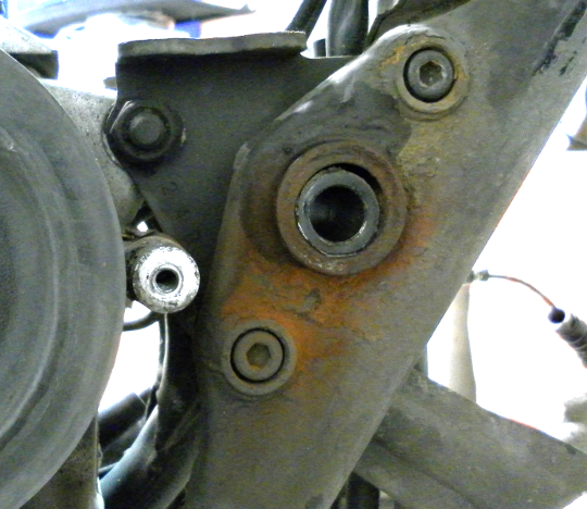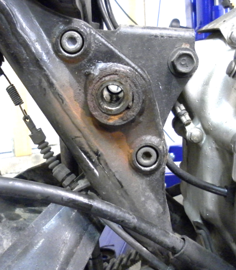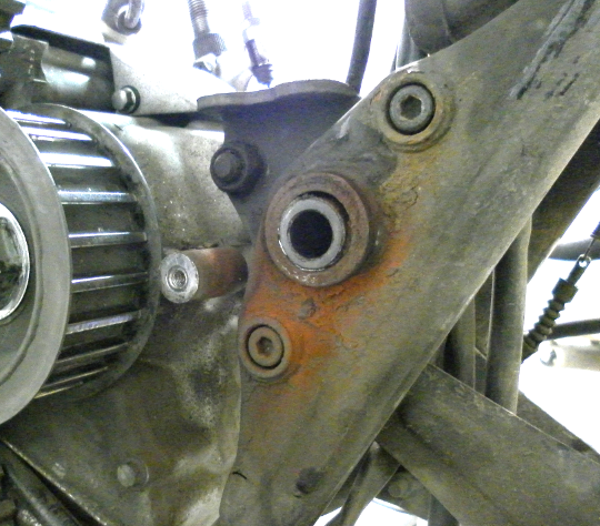 I also noticed quite a bit of rust where the swing arm connects to the frame and on the left side the cap that is supposed to protect the mount bolt of the swing arm was missing and when I got the rear tire out and managed to dis-engage both shock absorbers it felt like the bearings to the swing arm were filled with sand and gravel so I think I need to remove the swing arm and inspect and probably replace the needle bearings.