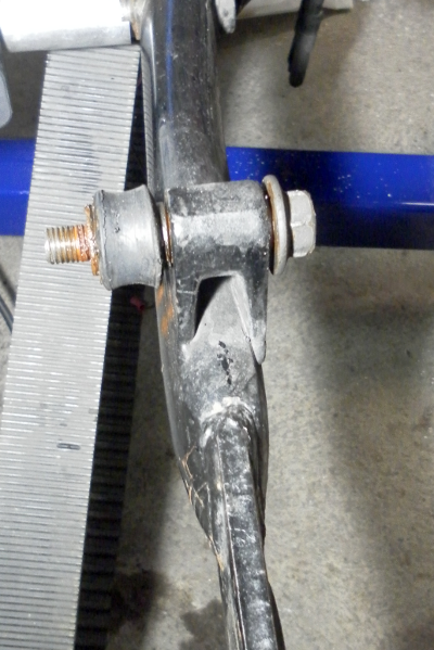 Regarding the very first post in the thread, the upper sub frame being squed/tweaked/bent to the right would cause the groove to be cut into the tire. There appears to be some serious damage to this part of the frame. If it was my bike, I'd remove the fender assembly and pull some string from point-to-point to see where the frame is bent and how it can be straightened.