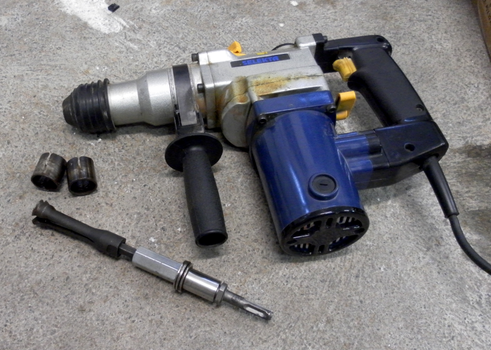 All the big pullers in the set us a regular metric M10 thread so the tool fabricated mostly by a friend of mine was an adapter so that I could use the hammer drill. My hammer drill was supplied with a threaded adapter that had a 1/2" UNF thread with 20 TPI on one side and a SDS plus mount on the opposite side so the only thing needed was a threaded cylinder with a female M10 thread in one end and a 1/2" UNF thread in the other. Mine was a bit short since I measured completely wrong so I had the use an extension. This piece should be easy to make for anyone that has access to a lathe.