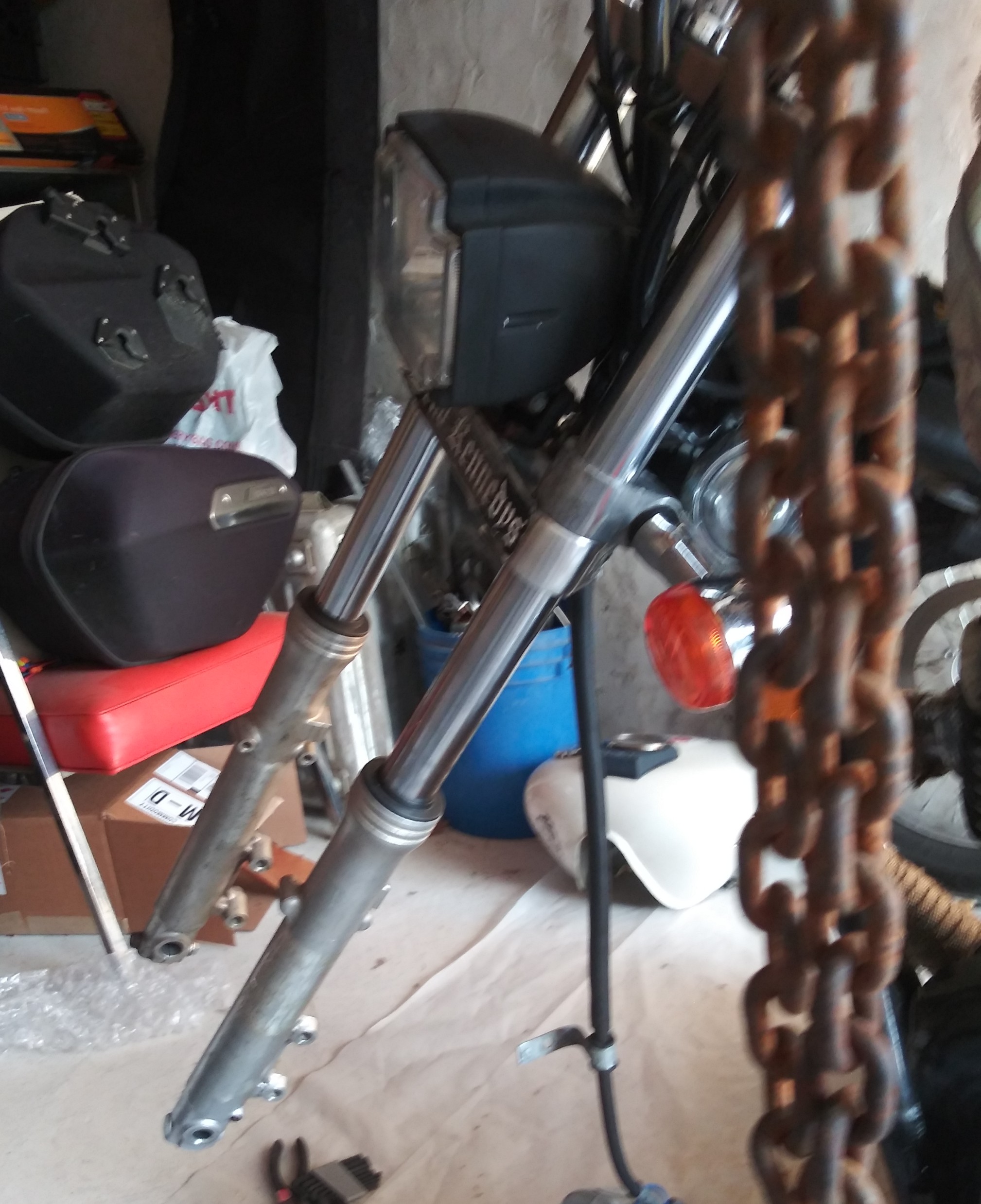 I put zip ties on the fork legs to see how much clearance I have in a panic stop, still 2 inches clear!