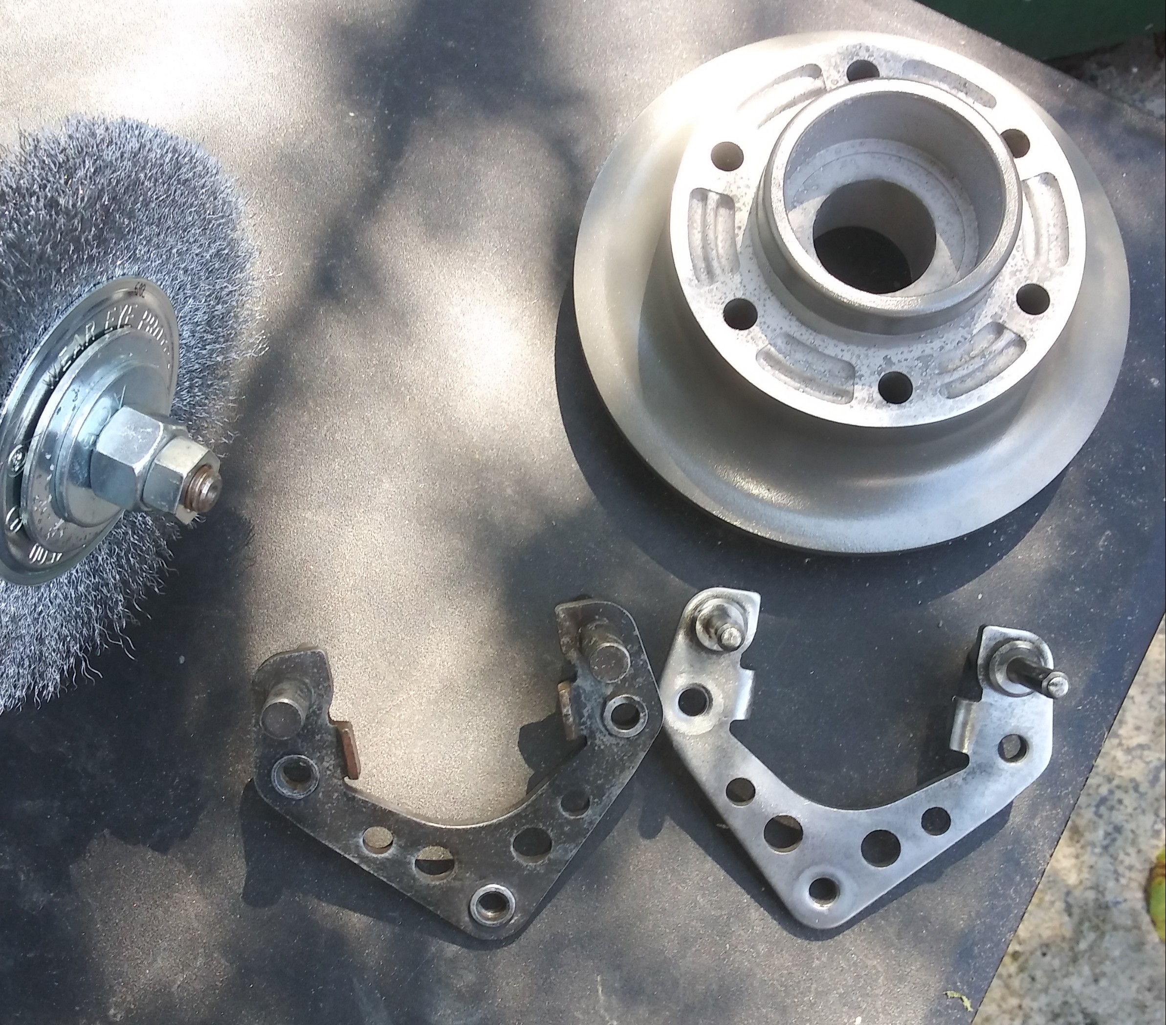 Anyways while I'm waiting on the shop I have the time to wire wheel the caliper brackets and paint them. Even though I cleaned everything thoroughly these look crappy from discoloration of whatever surface treatment they originally had.