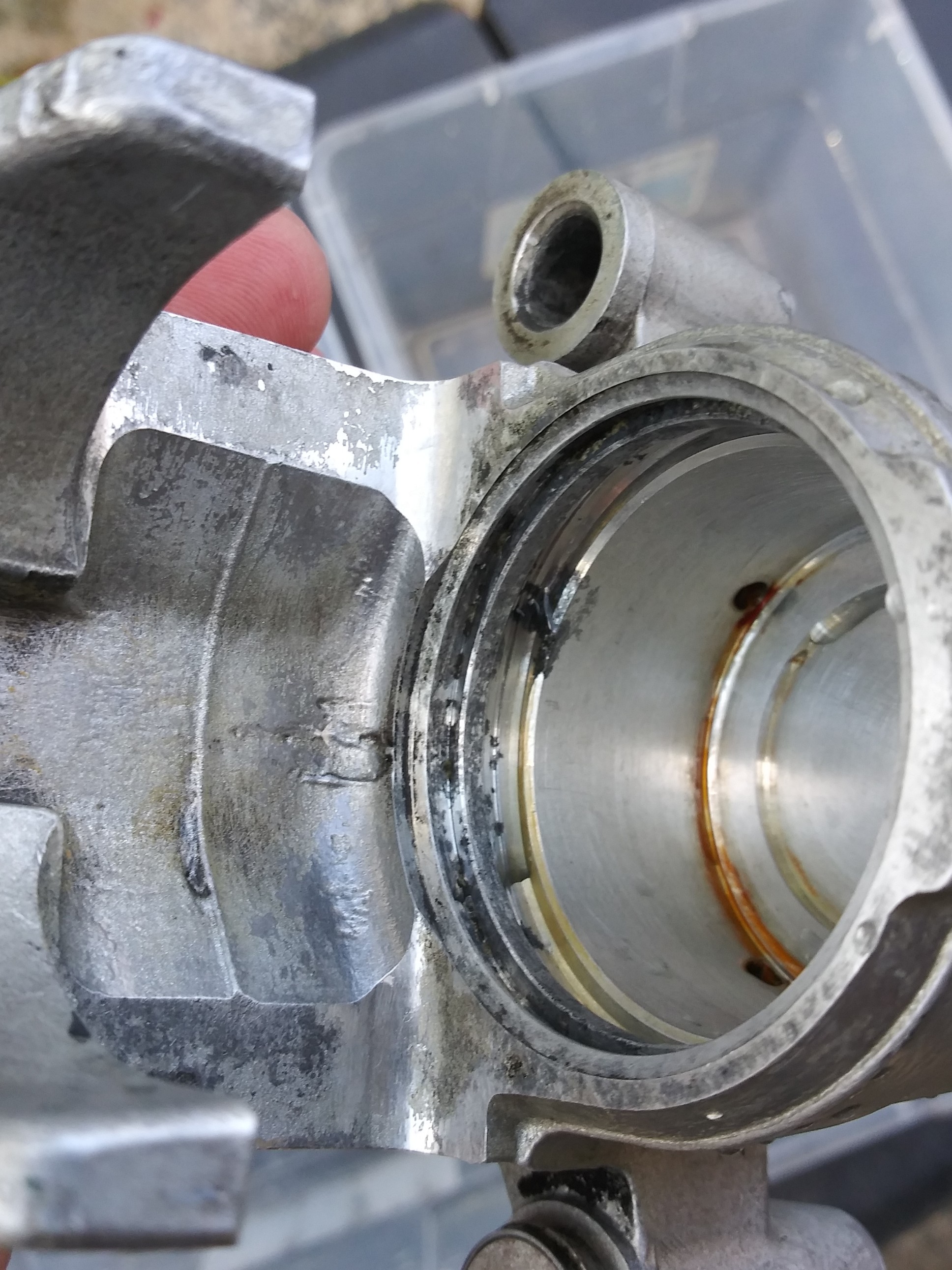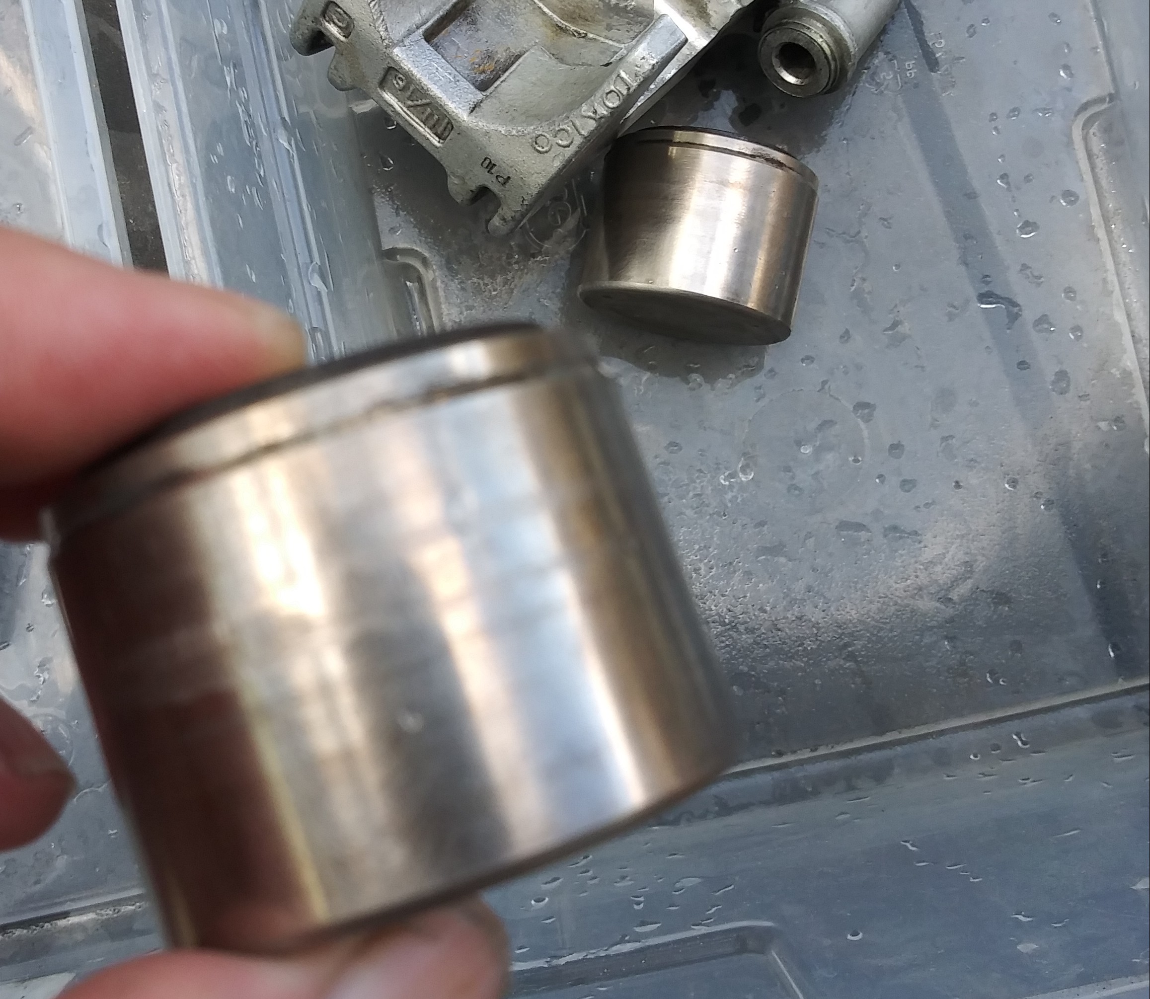 This has me worried. There's a good deal of corrosion in the seal seats and between the two seals. Scotchbrite is only doing so much and I fear the risk of scratching the cylinder walls with anything rougher.