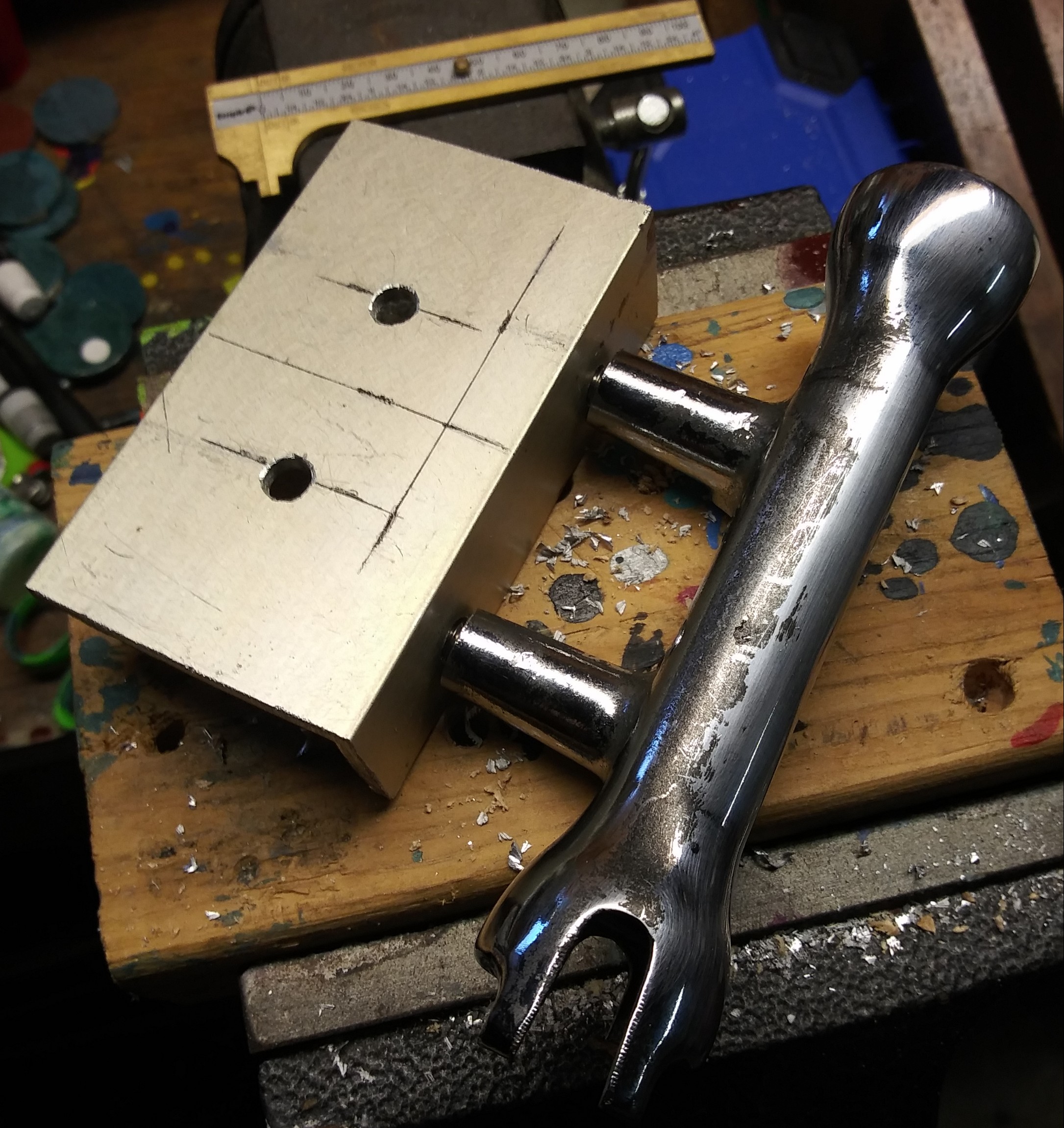 But didn't want to drill my triple tree for it. So I fabbed another back-alley special.