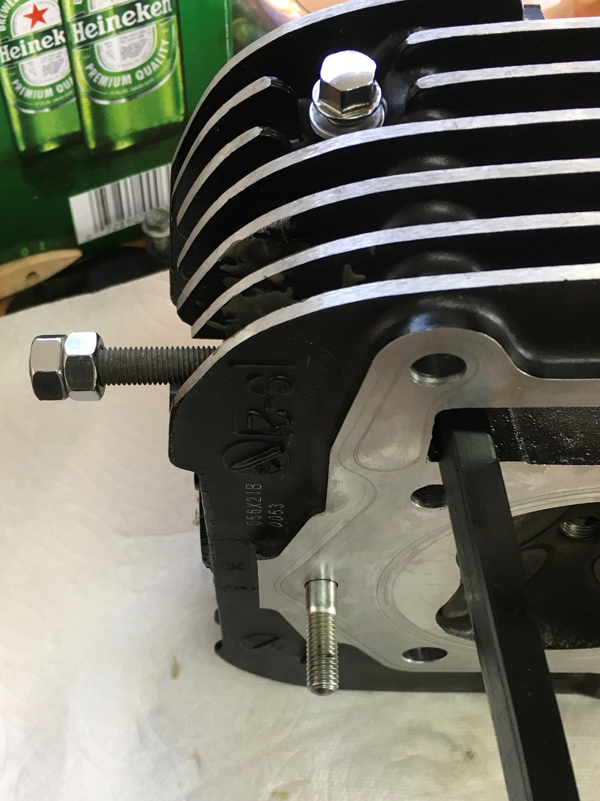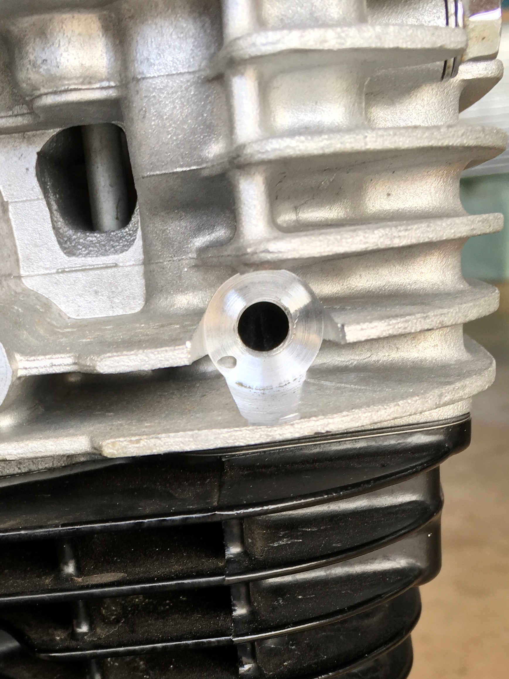 I spot faced the area on the cylinder head just behind the rear chain guide.  Then drilled and tapped 3/8-NF threads.