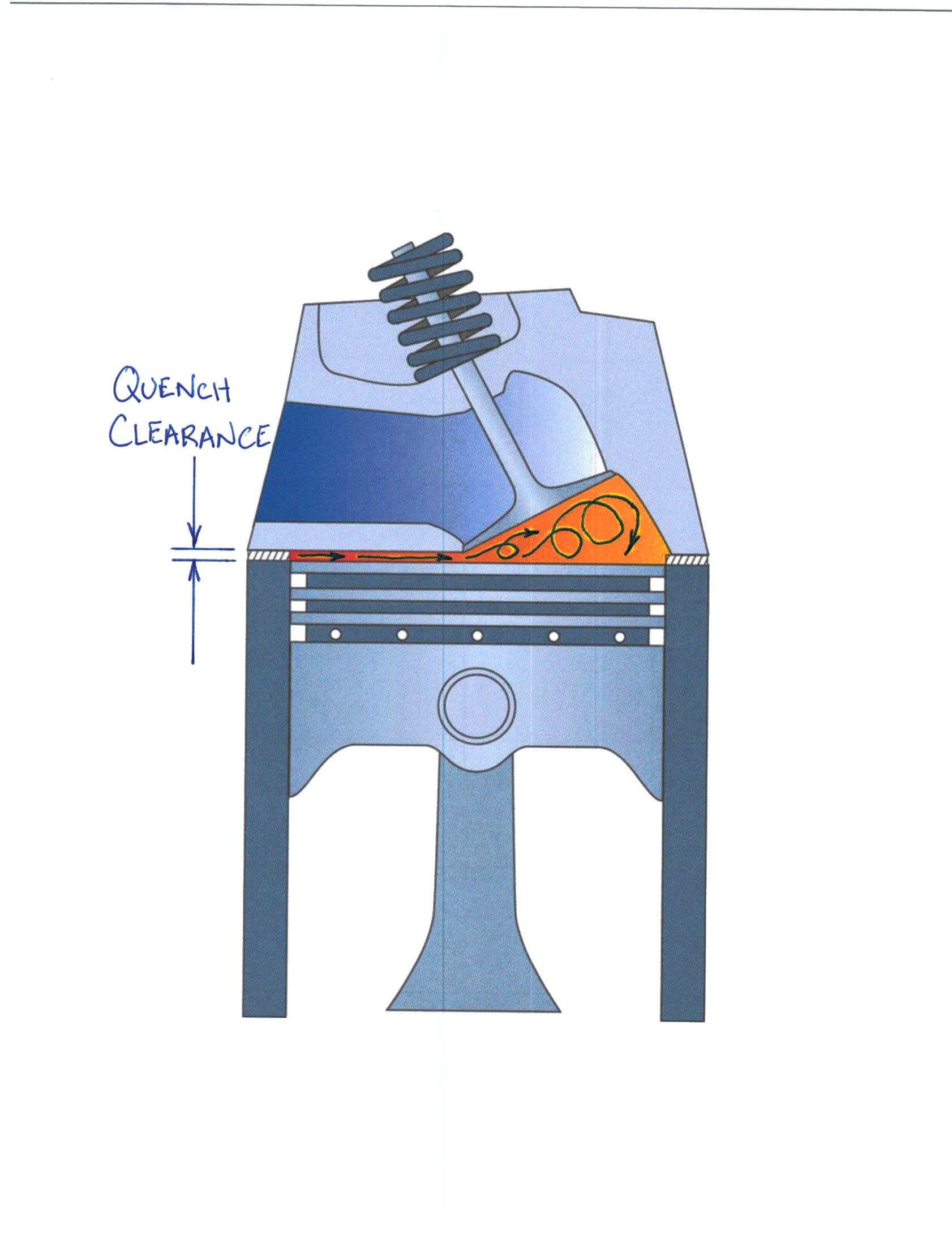 I have a thirst for quench.  If you Google search “cylinder head quench clearance”, you will find all sorts of experts advocating good, tight quench.  It’s the clearance between the flat portion of the piston top and the flat bottom of the cylinder head (around the combustion chamber).