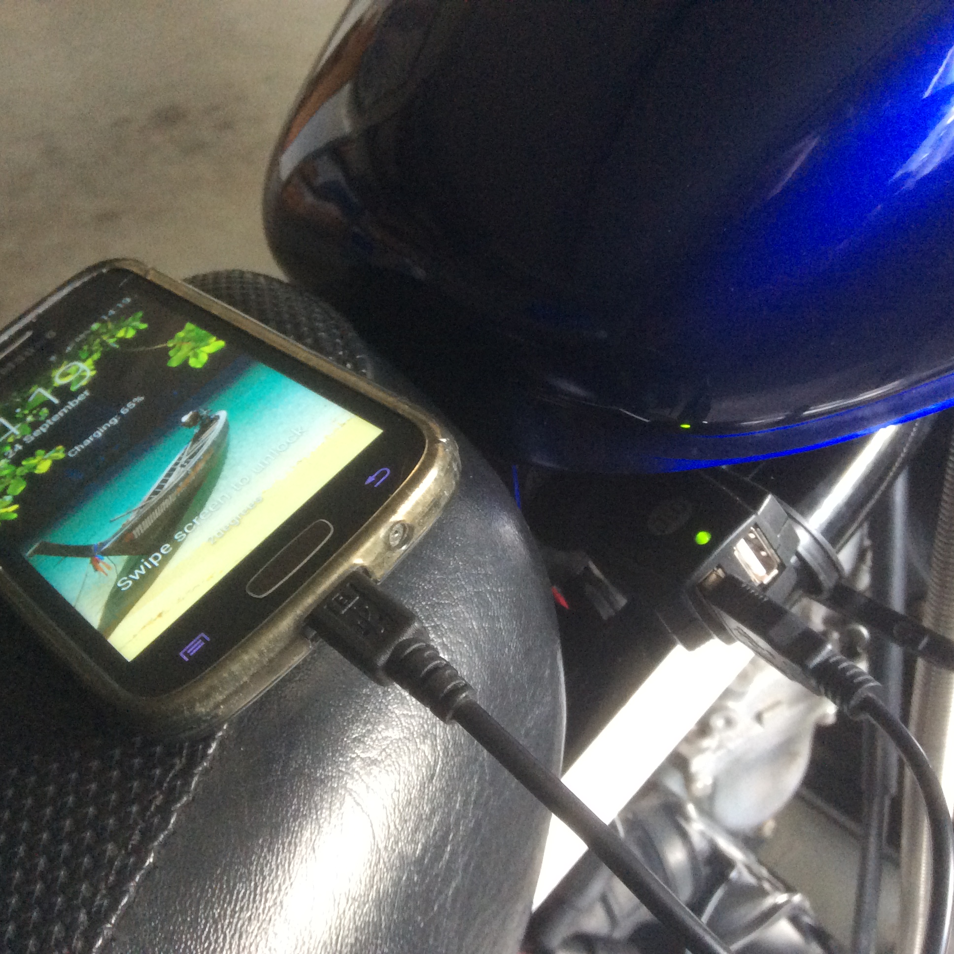 Safer bet is to just buy a $10 power pack if all you need is an emergency charge....or plug in your phone to your new plug and ride around while it is charging.