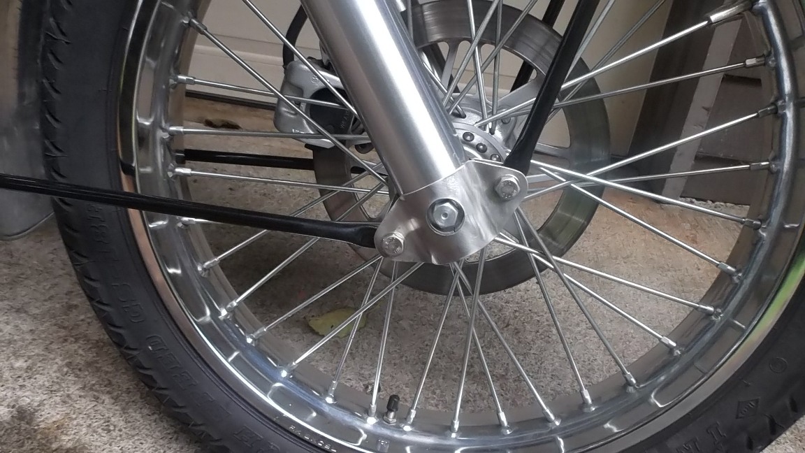 I started by picking up a very nice 5,000 mile 2013 bike for only $2,000.  I then got a few Ryca parts - air filter, handle bars, megaphone, chain conversion kit, Lucas-type taillight, fork boots - and of course the carb jets from Lancer and timing chain adjuster fix from Verslagen.  Then I picked up Italian alloy fenders, and repro Matchless fender stays from England. I hand fabricated lower fork mounts for the front fender stays, the upper front fender mount, rear fender mounts, and most difficult of all, moved the front mounted foot rests and controls to a rear position.  I was actually able to use the left side including the side stand with no change to the shifter linkage.  The right side required a lot of modification to the brake pedal and relocation of the brake light switch.