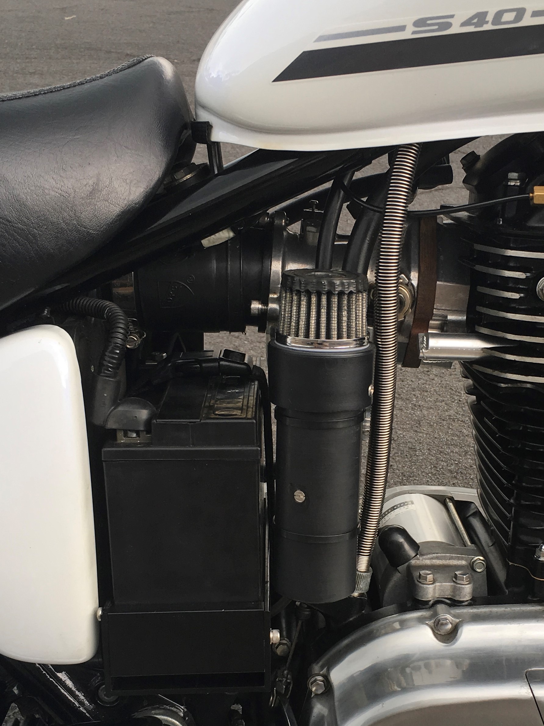 Big singles (and V-Twins) have issues with the breather system.  The underside of our big piston displaces 40 cubic inches of air every time it moves from TDC to BDC.  And heading the other direction, it must pull 40 cubic inches of air back into the crankcase.  Multi-cylinder engines generally don’t have that problem because as one piston is moving down, another is moving up, so the air displaced by one just moves over to the area under the piston that is moving up.
