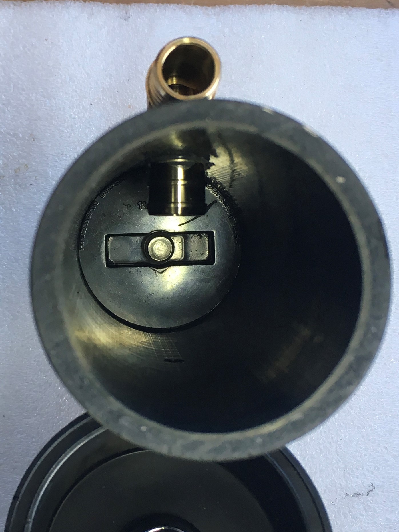 It has a drain bolt on the bottom to periodically drain out the oil, just like you’re supposed to do on the stock air box.  The crankcase vent hose connects to the fitting on the side of the can.  There is a scrubbing pad inserted in the upper part of the can to collect oil droplets and prevent them from being carried out of the breather filter.