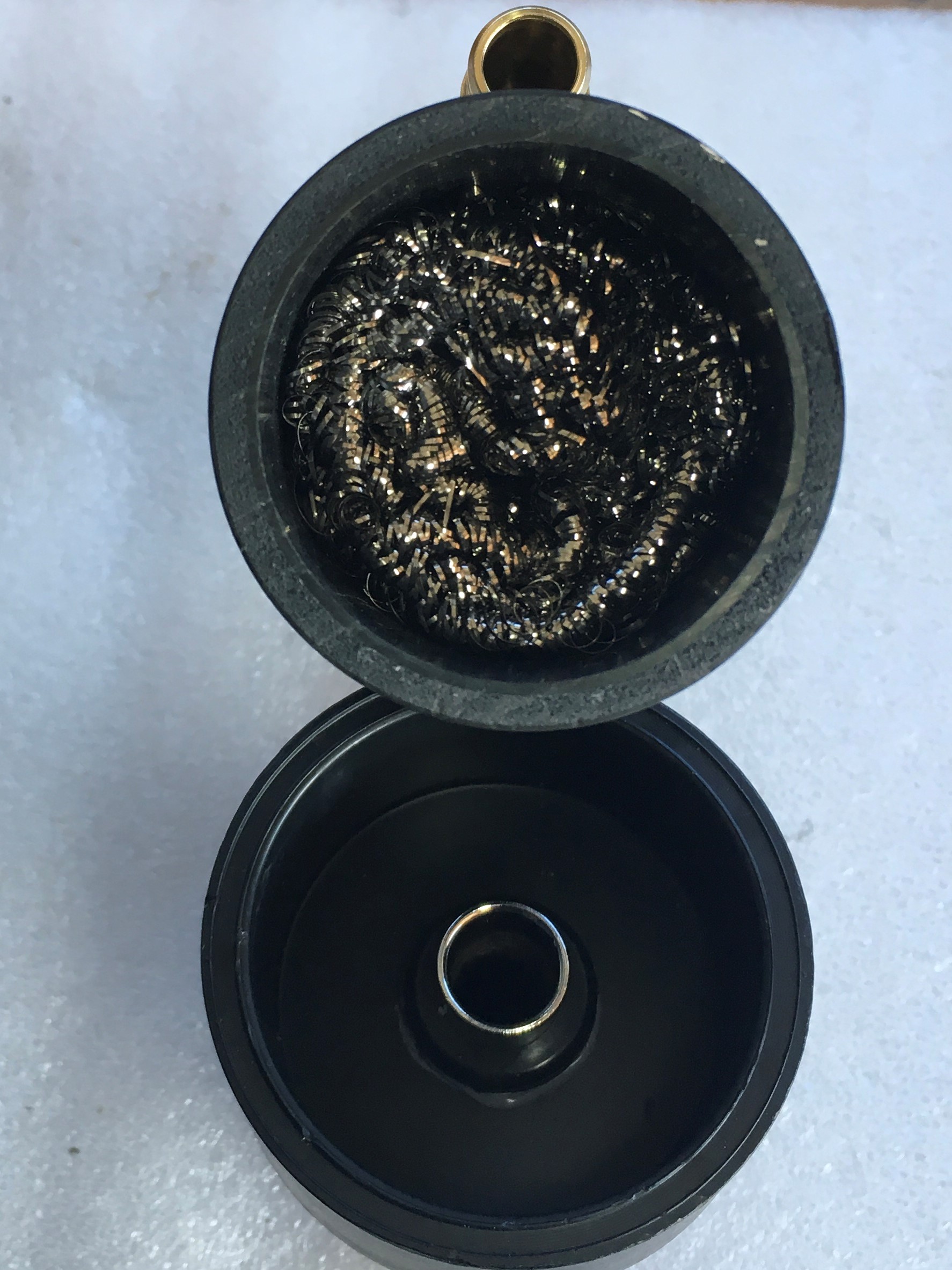 So now it was time for a catch can.  I fabricated this catch can from ABS pipe, a cheap fitting, a stainless-steel scrubbing pad, and the K&N breather filter.