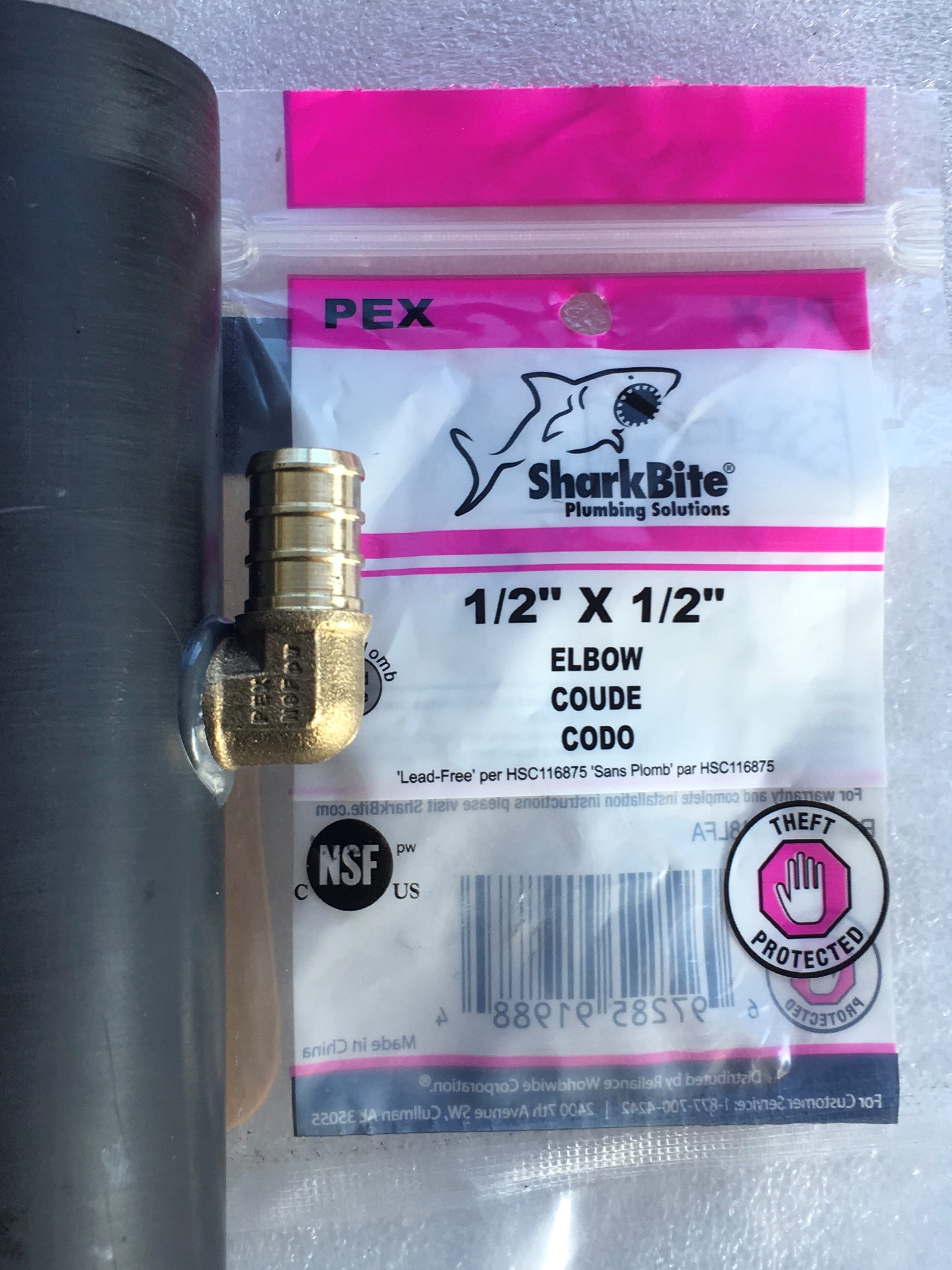 The 90° fitting in the side is for PEX piping and you can find it at any decent hardware store.