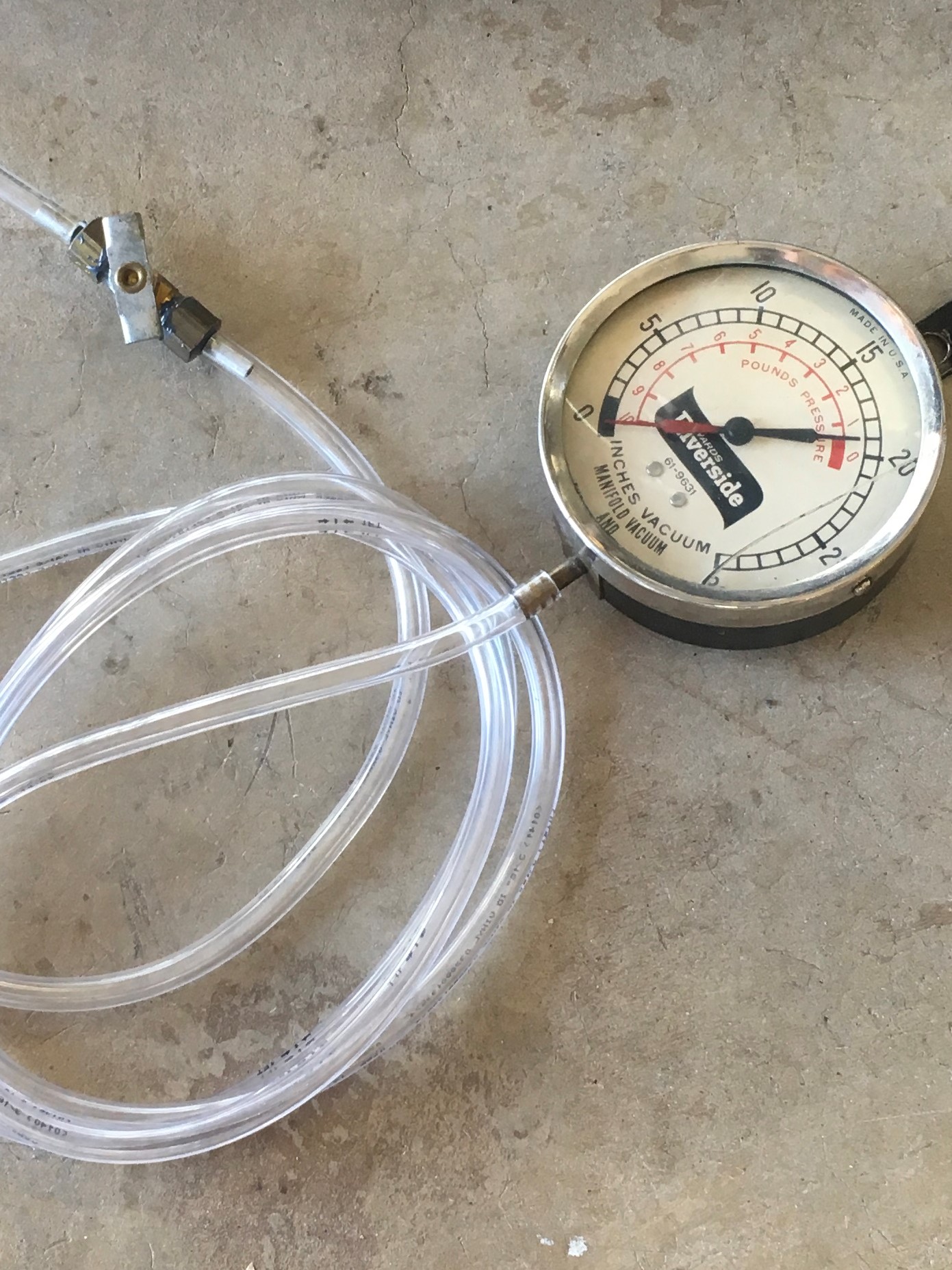 Then I break out the trusty Monkey Wards Riverside vacuum gage (circa 1967) and hook it up with a snubber valve.  Ready to rock-n-roll.