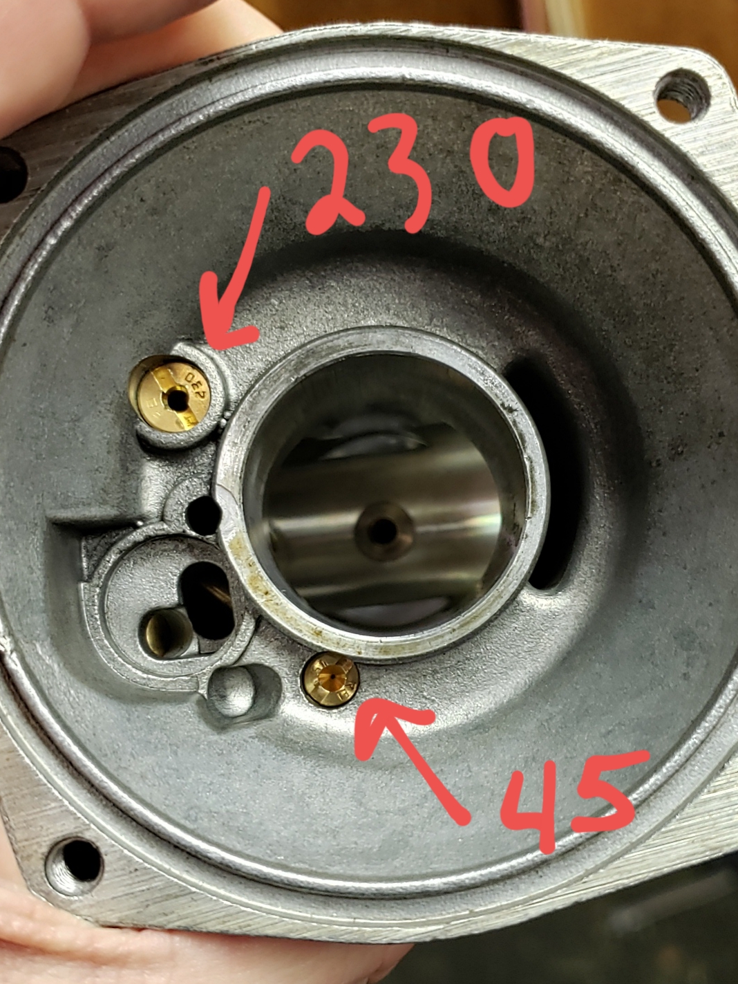 Too old and not broke enough to pay attention to mileage. My Buddy rides the last one I built and he's not complaining. When we do a day ride he stops once in 8hrs same as the rest of us. I wanna say the pilot is 52.5, but don't quote me, too many bikes go thru here to recall. It's whatever 6Sigma suggests and sends with their kit. Needle gets 2-3 washers I believe, and the slide spring gets trimmed. Bike starts so much quicker, doesn't smoke or stink or get hot.
