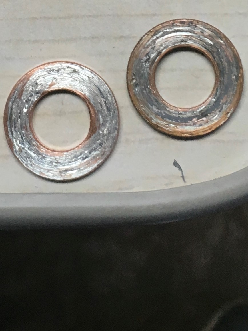 I noticed most of the copper washers were stamped where they had conformed after previous mounting; I suppose, annealed or not, once replaced, the surfaces may not have aligned in a complimentary way. Regardless, it is heartening to have the cause not be mysterious.
