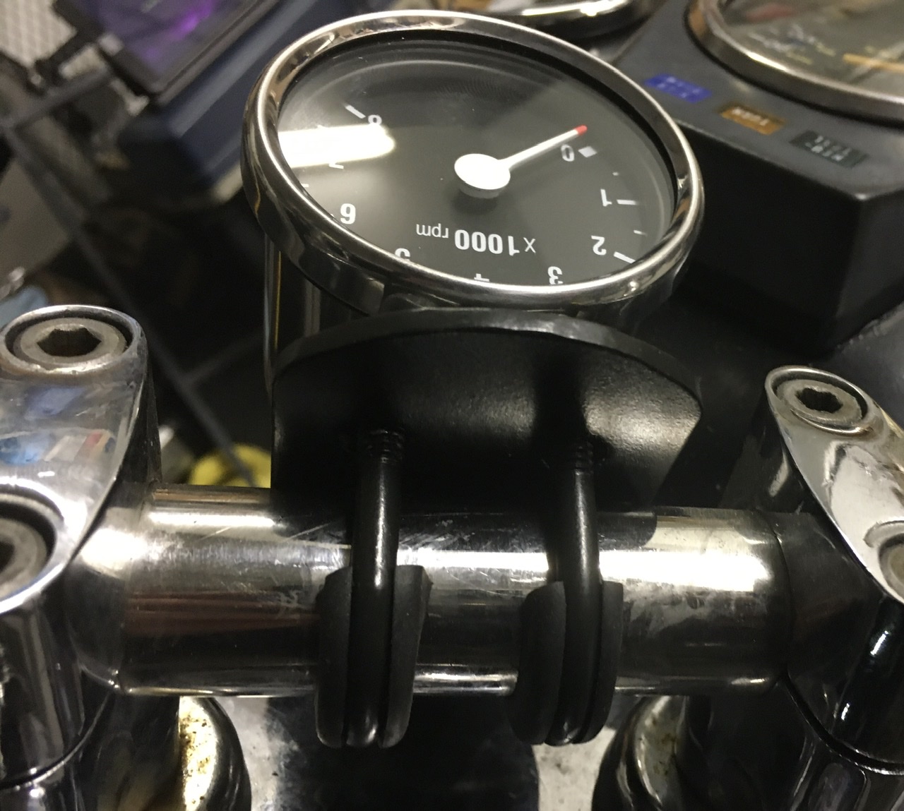 -I used some rubber grommet washers on the gauge bolts to limit vibration and cut a rubber grommet in half to use on the U-bolts on the handlebars.