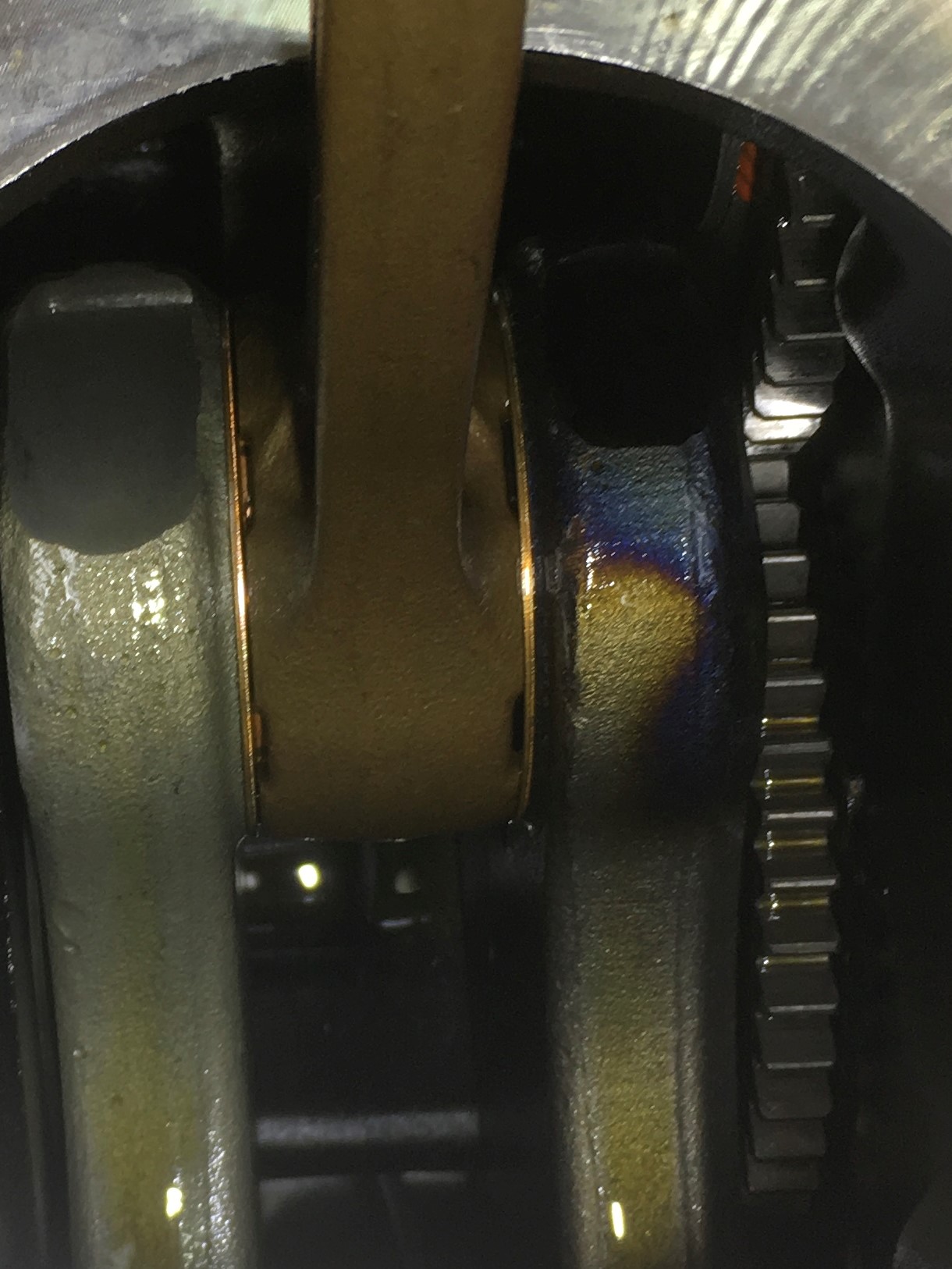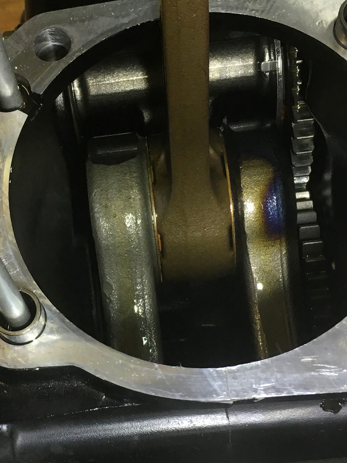 And if your crank got so hot that it blued while running.....I would suspect you would have cooked the oil that came in contact with the hot surface and you would see traces of burned oil sticking to the crank.