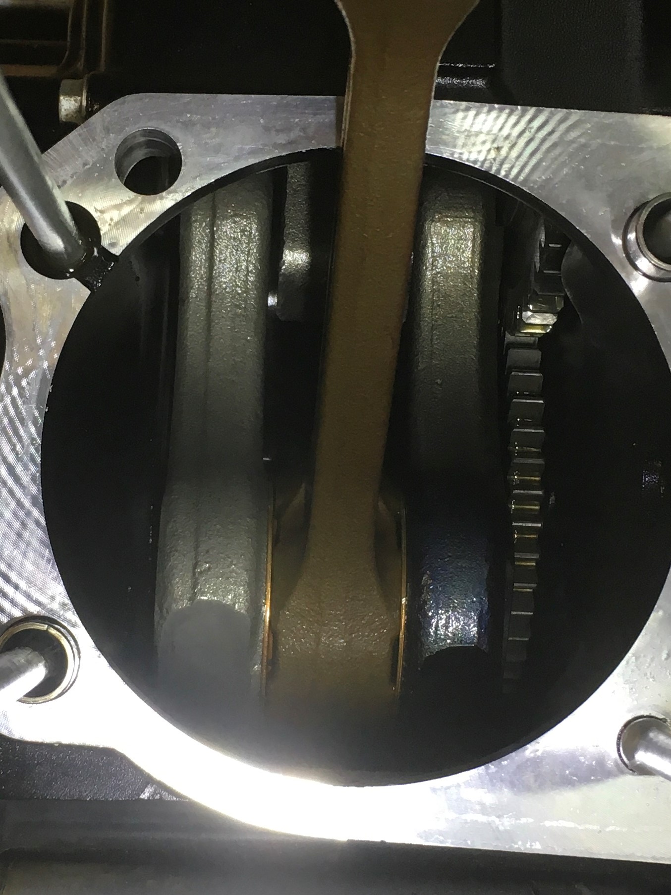 I have never seen anything like this.  If any of you know what this is I'd appreciate anything you can tell me about it.  It turns free, no evidence of rubbing, rod thrust washers look fine, no discoloration on the rod or the left hand crank throw.