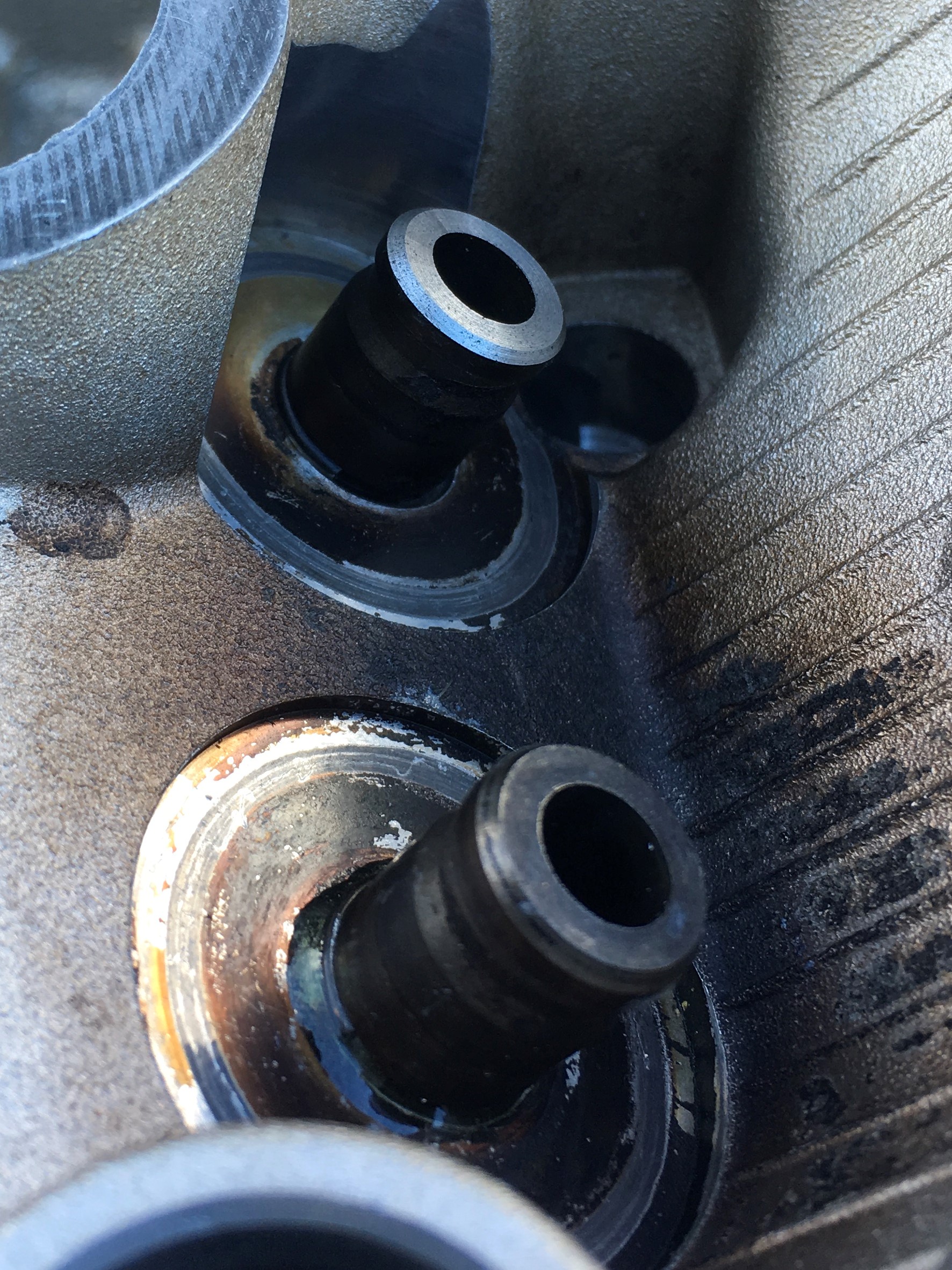 To provide a little additional oil to the rocker arms and shafts, I chamfered the stock oil holes.